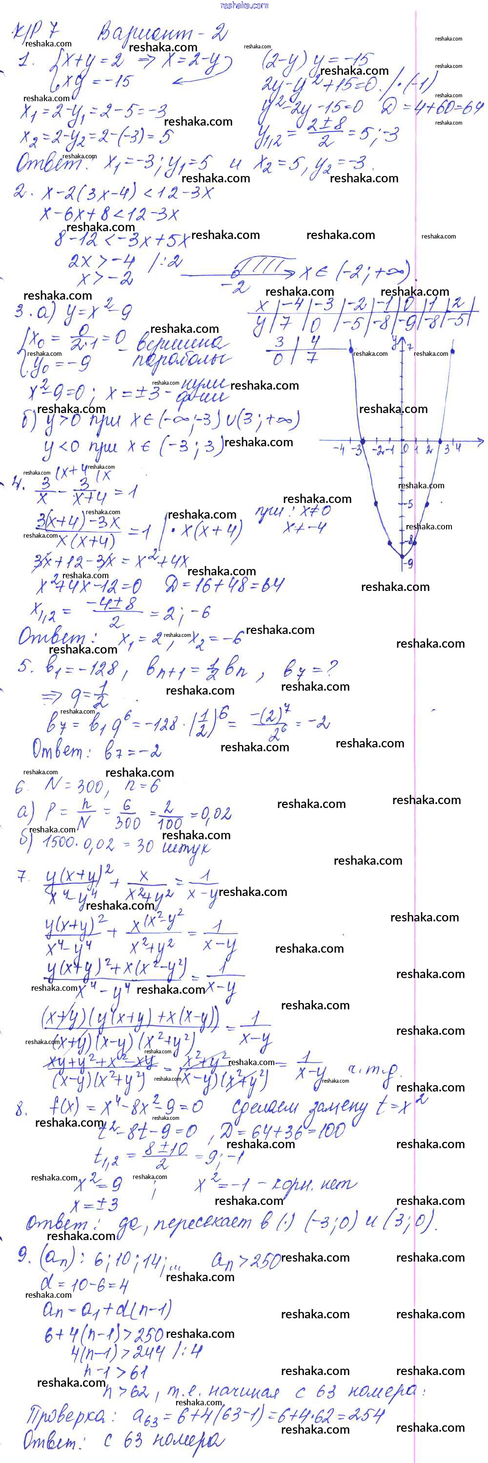 Решака - онлайн ответы Алгебра Кузнецова, Минаева за 9 класс Контрольные работы ФГОС 2016 - вариант №2