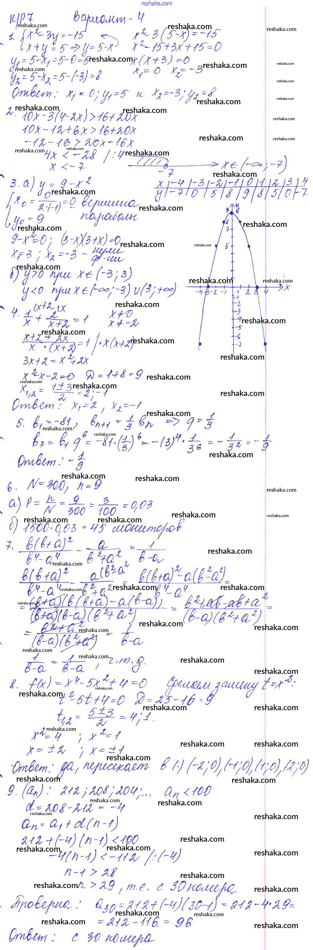 Решака - онлайн ответы Алгебра Кузнецова, Минаева за 9 класс Контрольные работы ФГОС 2016 - вариант №4