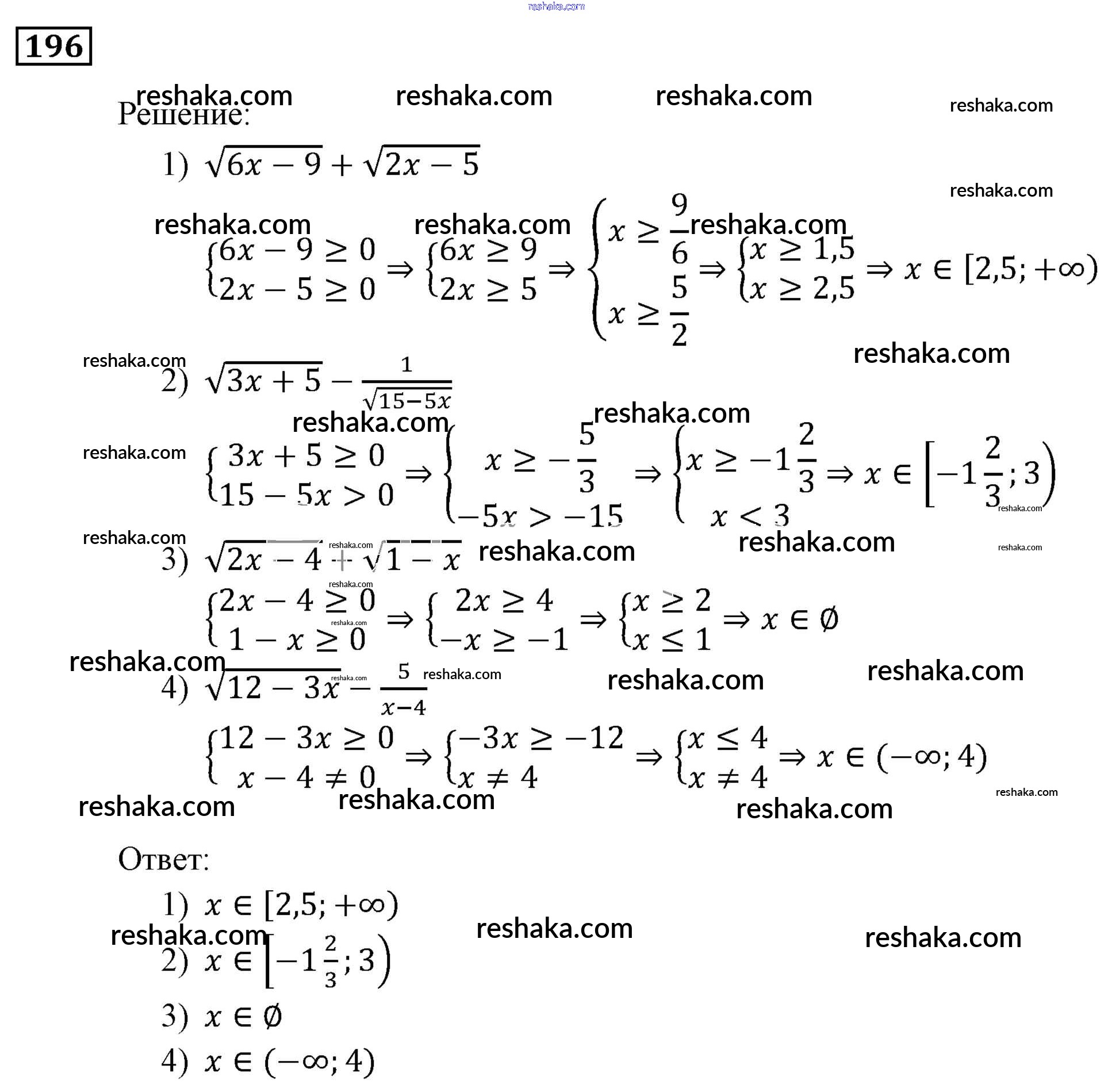 Решака - онлайн ответы Алгебра Мерзляк, Полонский за 9 класс Учебник ФГОС 2016 - 196