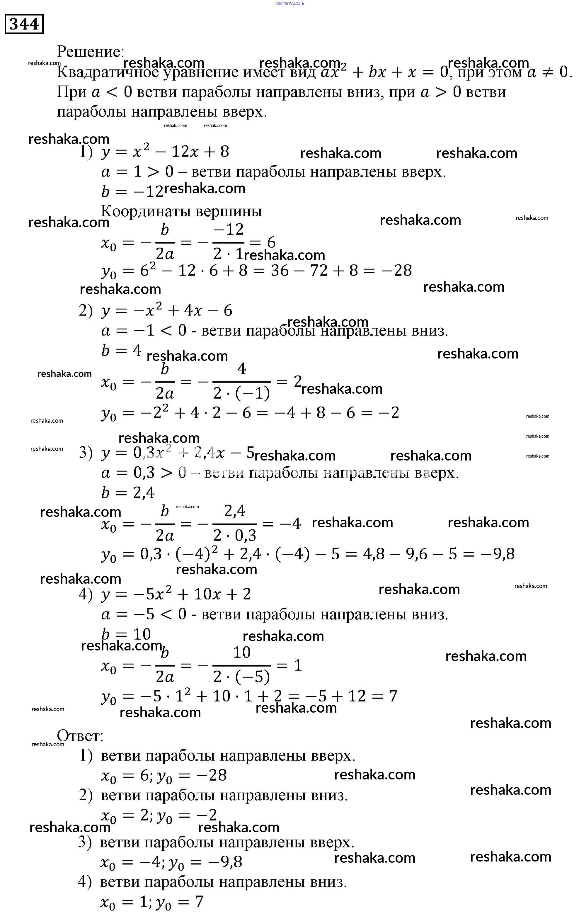 Решака - онлайн ответы Алгебра Мерзляк, Полонский за 9 класс Учебник ФГОС 2016 - 344