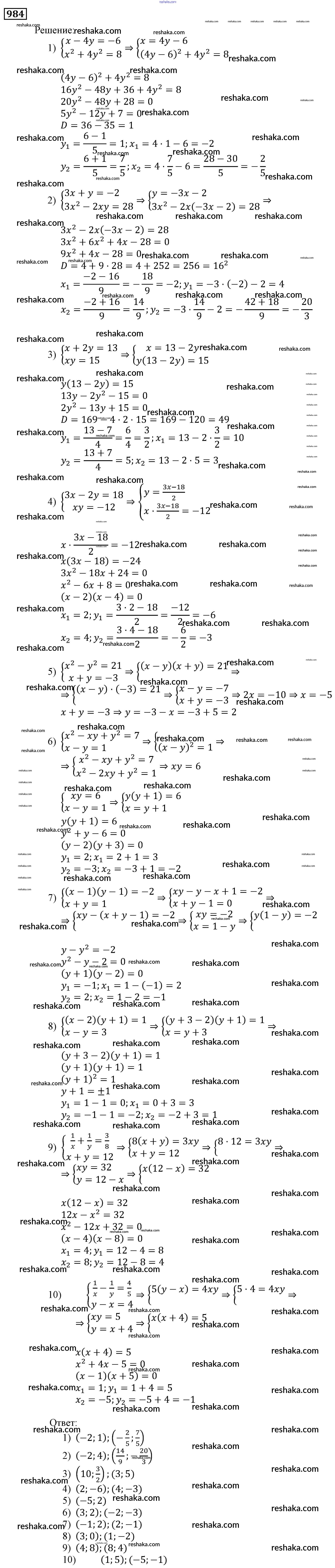 Решака - онлайн ответы Алгебра Мерзляк, Полонский за 9 класс Учебник ФГОС 2016 - 984