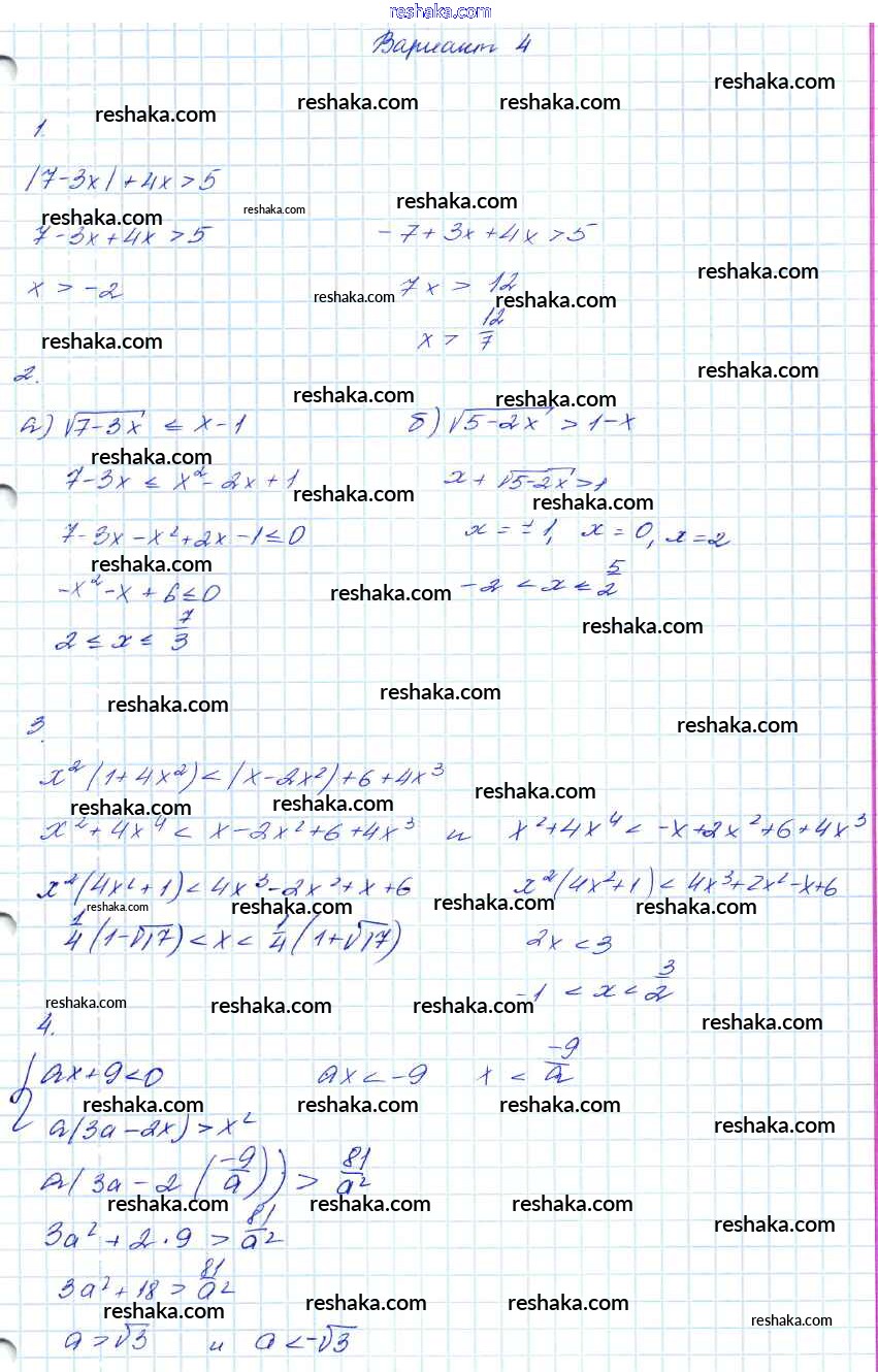 Решака - онлайн ответы Алгебра Мордкович за 7-9 класс Контрольные работы Углубленный уровень ФГОС 2016 - 4