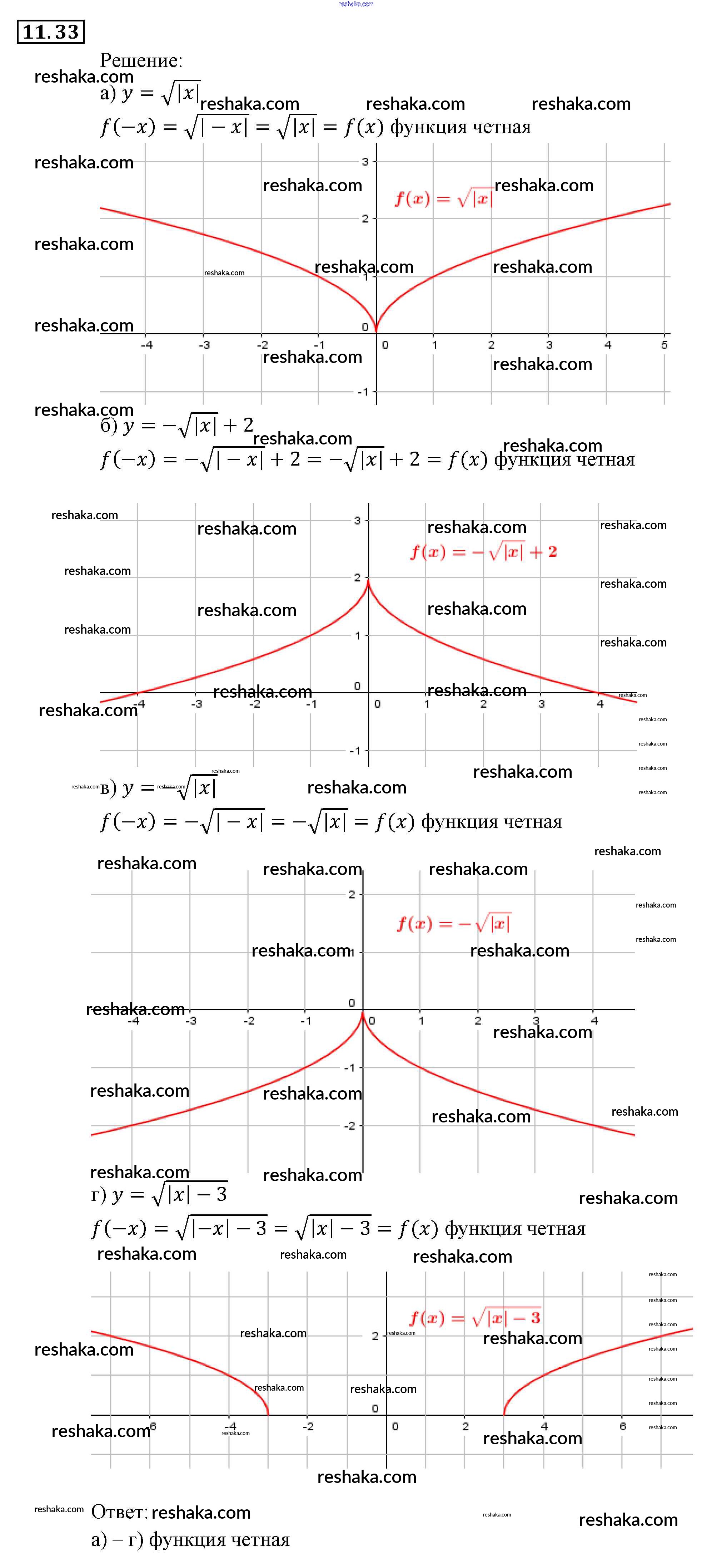 Представляем вам сборники по Алгебре, с готовыми ответами к Задачнику Мордкович школьной программы для учеников девятый класса. Это не просто гдз с ответом, а с подсказками, как верно решить § 11. Честные и нечестные функции Глава 3. Числовые функции 33. Проверяй домашку с умом и получай высший балл!