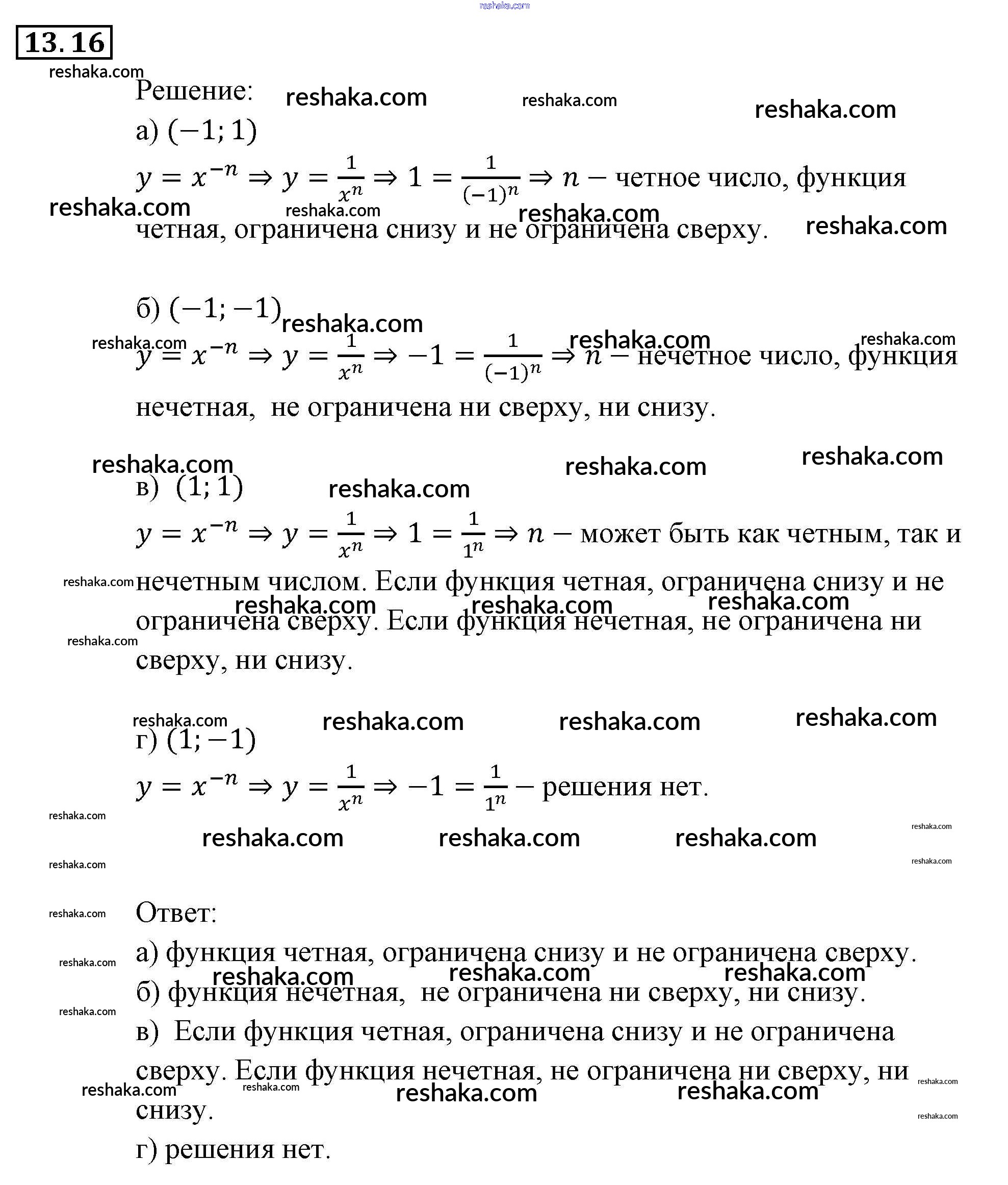 Представляем вам сборники по Алгебре, с готовыми ответами к Задачнику Мордкович школьной программы для учеников девятый класса. Это не просто гдз с ответом, а с подсказками, как верно решить § 13. Функции у = х~" (п е N), их свойства и графики Глава 3. Числовые функции 16. Проверяй домашку с умом и получай высший балл!