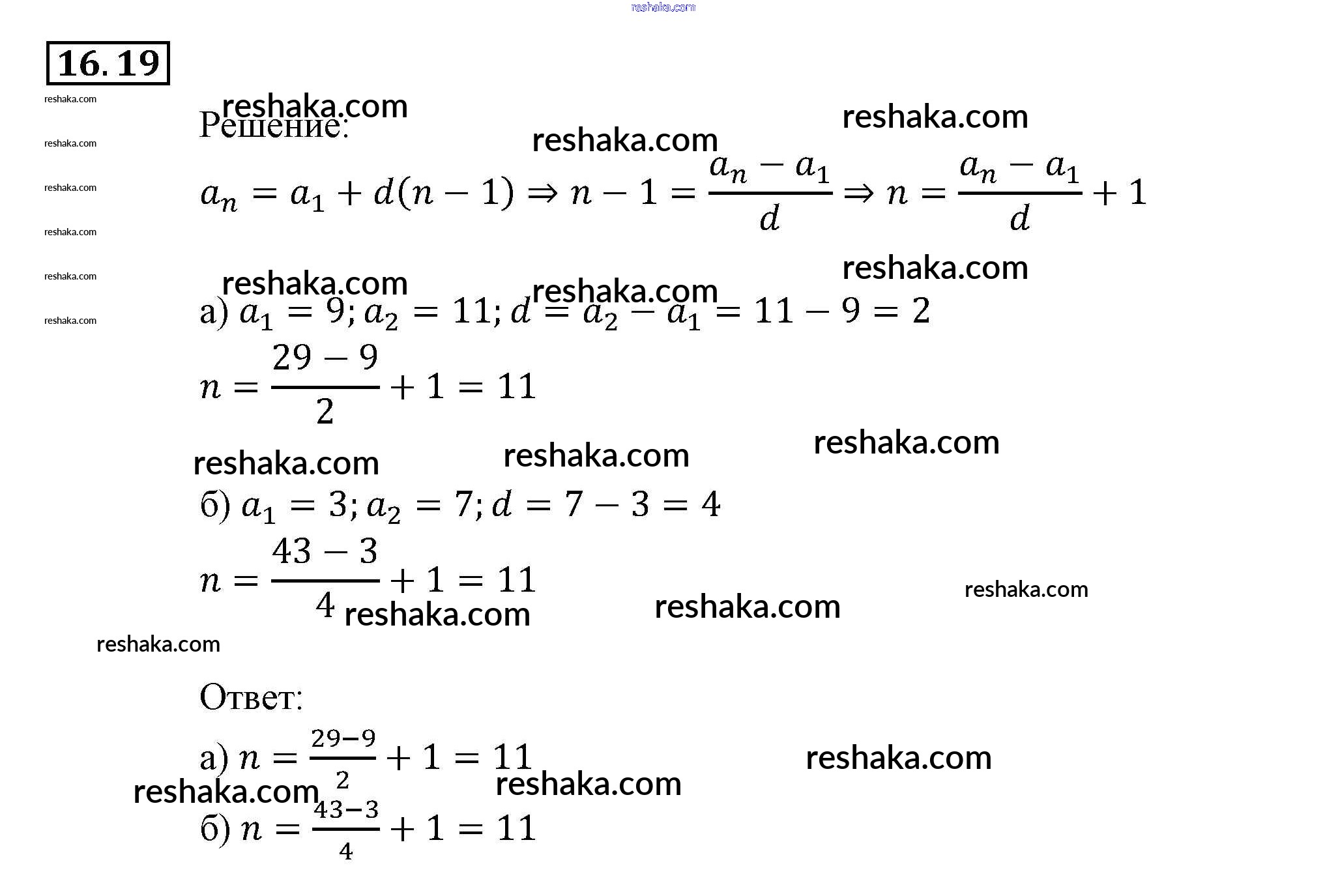 Представляем вам сборники по Алгебре, с готовыми ответами к Задачнику Мордкович школьной программы для учеников девятый класса. Это не просто гдз с ответом, а с подсказками, как верно решить § 16. Арифметическая прогрессия Глава 4. Прогрессии 19. Проверяй домашку с умом и получай высший балл!