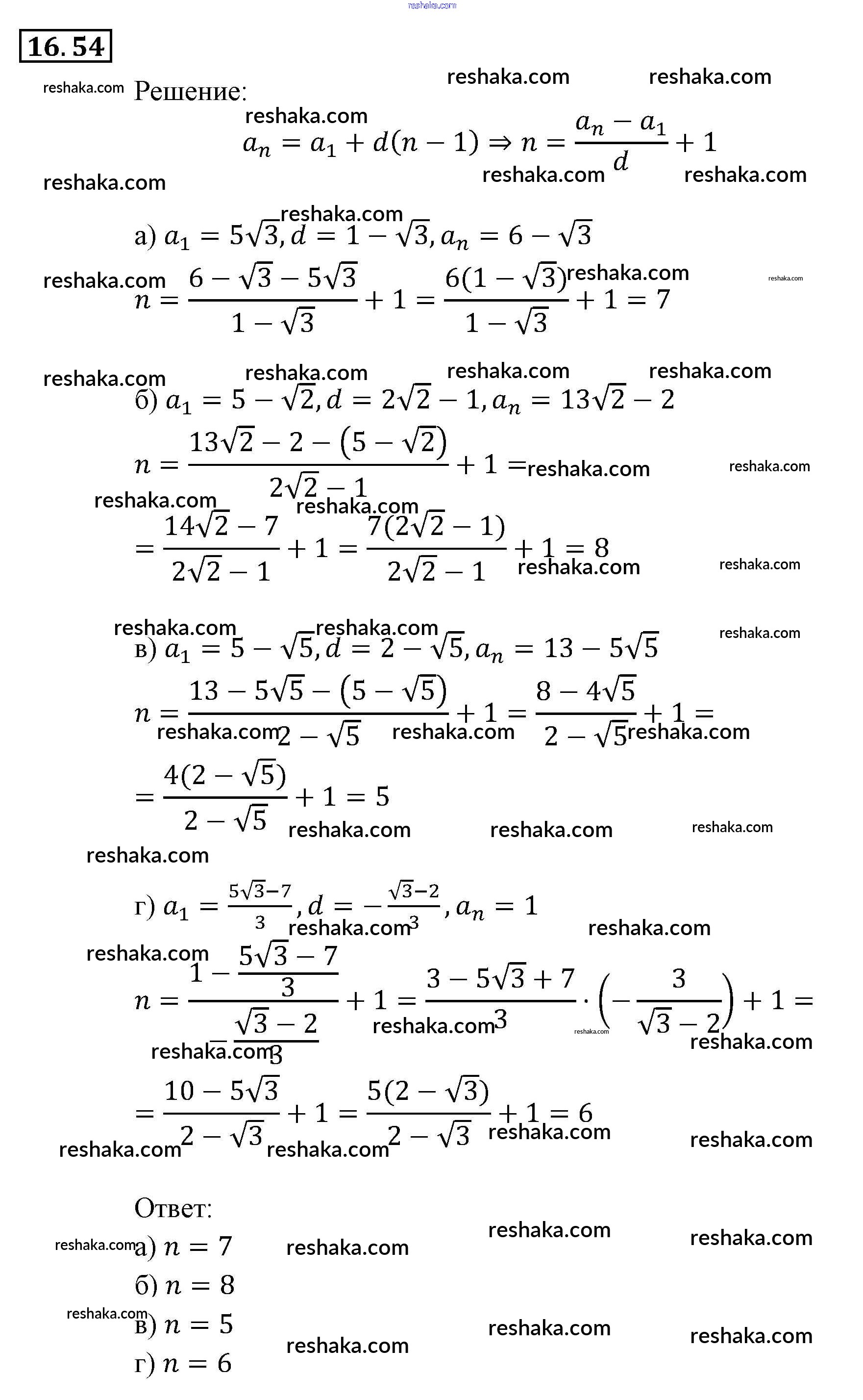 Представляем вам сборники по Алгебре, с готовыми ответами к Задачнику Мордкович школьной программы для учеников девятый класса. Это не просто гдз с ответом, а с подсказками, как верно решить § 16. Арифметическая прогрессия Глава 4. Прогрессии 54. Проверяй домашку с умом и получай высший балл!