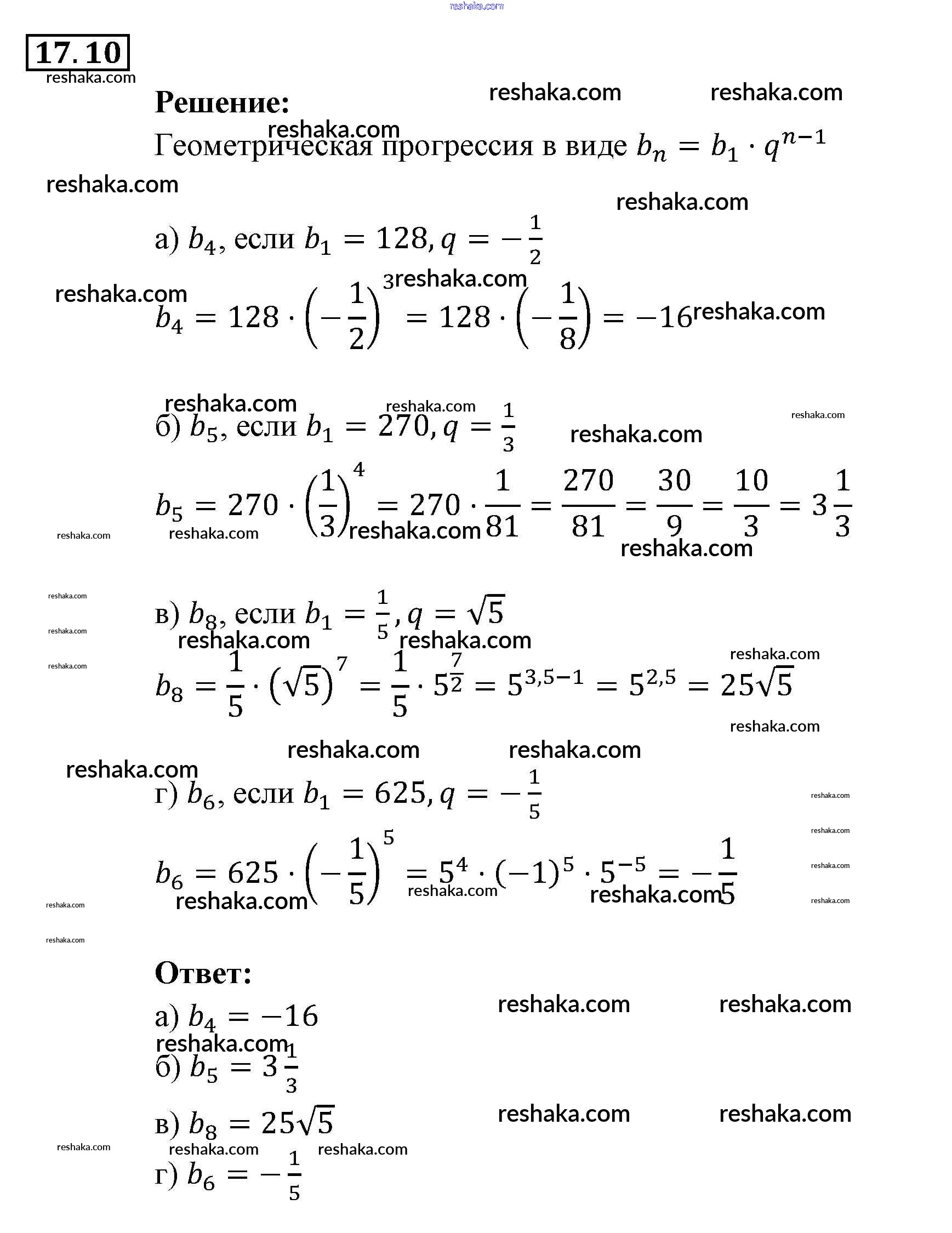 Представляем вам сборники по Алгебре, с готовыми ответами к Задачнику Мордкович школьной программы для учеников девятый класса. Это не просто гдз с ответом, а с подсказками, как верно решить § 17. Геометрическая прогрессия Глава 4. Прогрессии 10. Проверяй домашку с умом и получай высший балл!