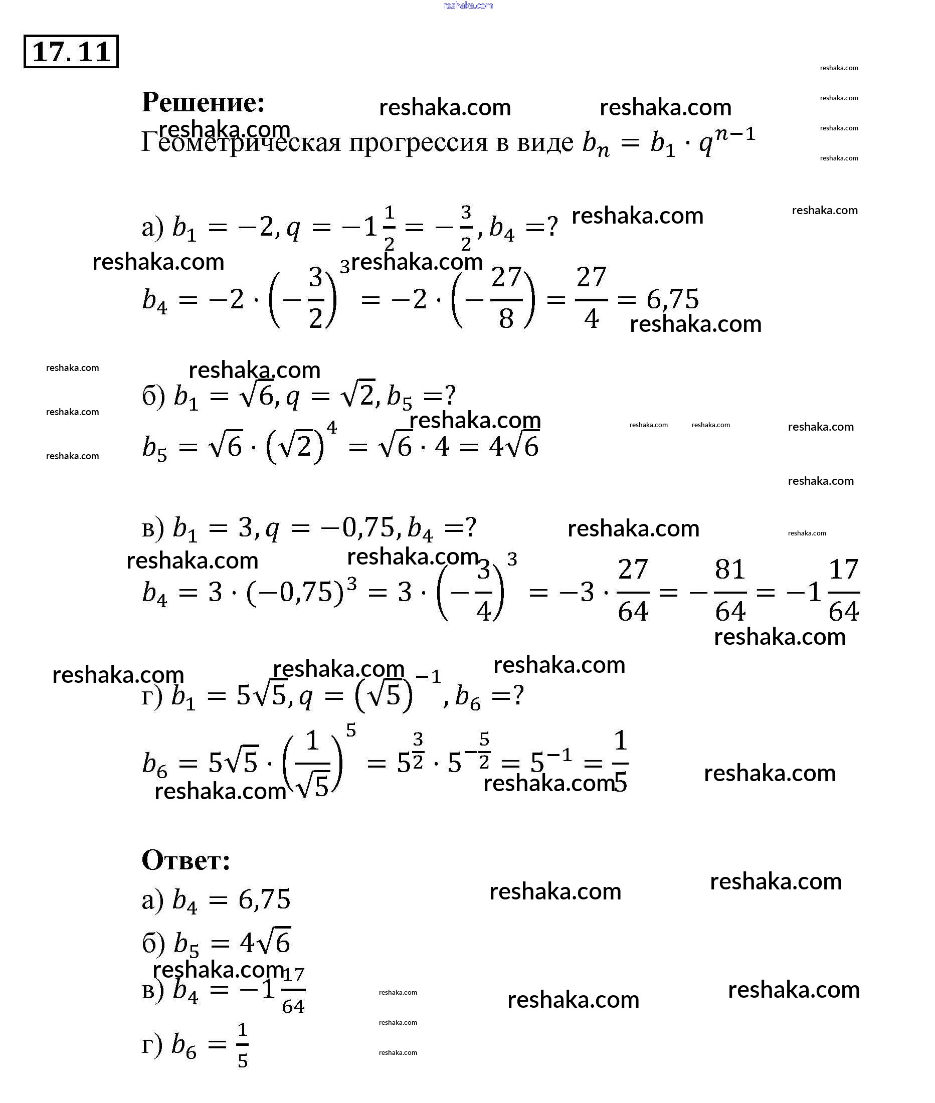 Представляем вам сборники по Алгебре, с готовыми ответами к Задачнику Мордкович школьной программы для учеников девятый класса. Это не просто гдз с ответом, а с подсказками, как верно решить § 17. Геометрическая прогрессия Глава 4. Прогрессии 11. Проверяй домашку с умом и получай высший балл!