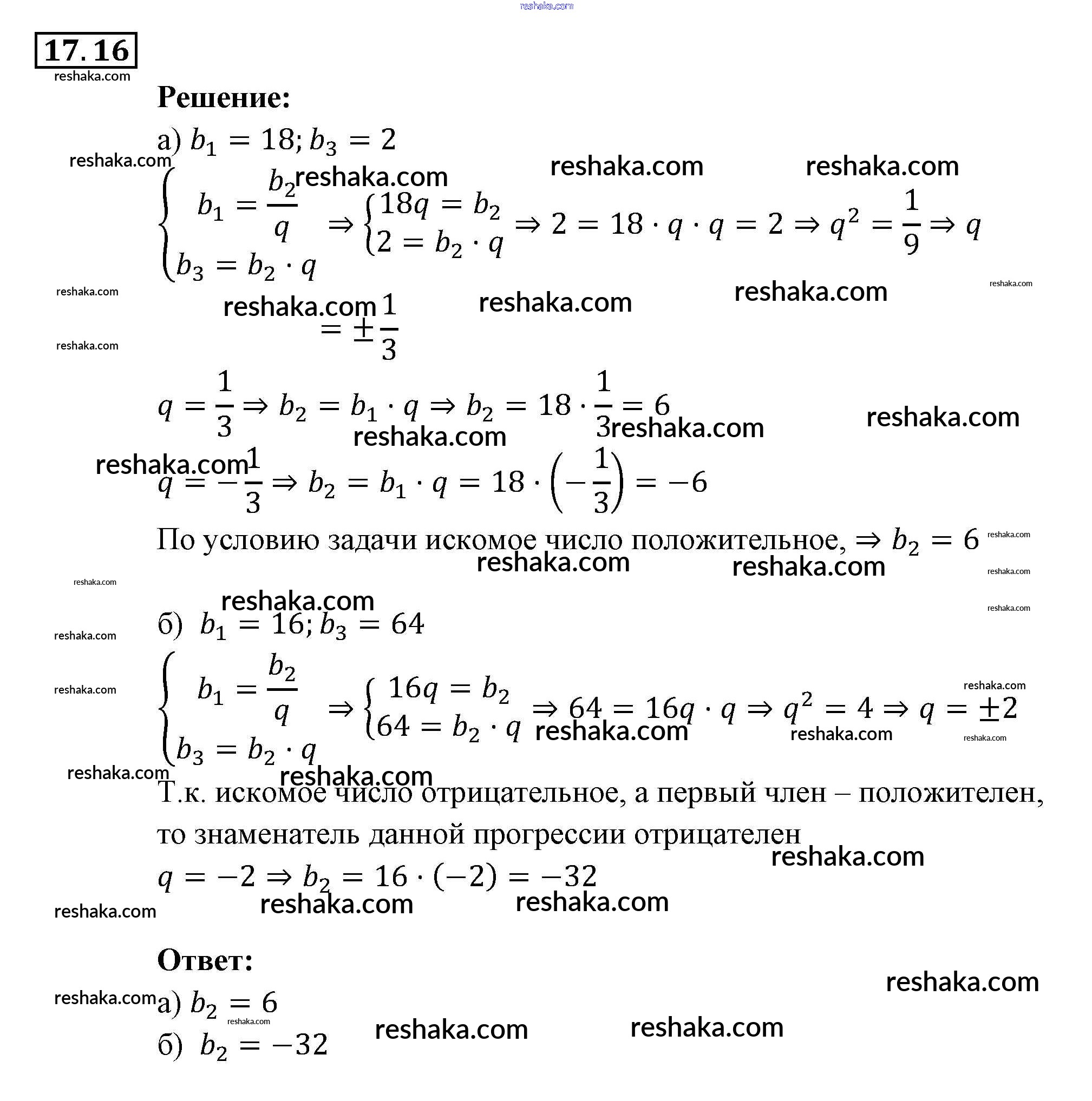 Представляем вам сборники по Алгебре, с готовыми ответами к Задачнику Мордкович школьной программы для учеников девятый класса. Это не просто гдз с ответом, а с подсказками, как верно решить § 17. Геометрическая прогрессия Глава 4. Прогрессии 16. Проверяй домашку с умом и получай высший балл!