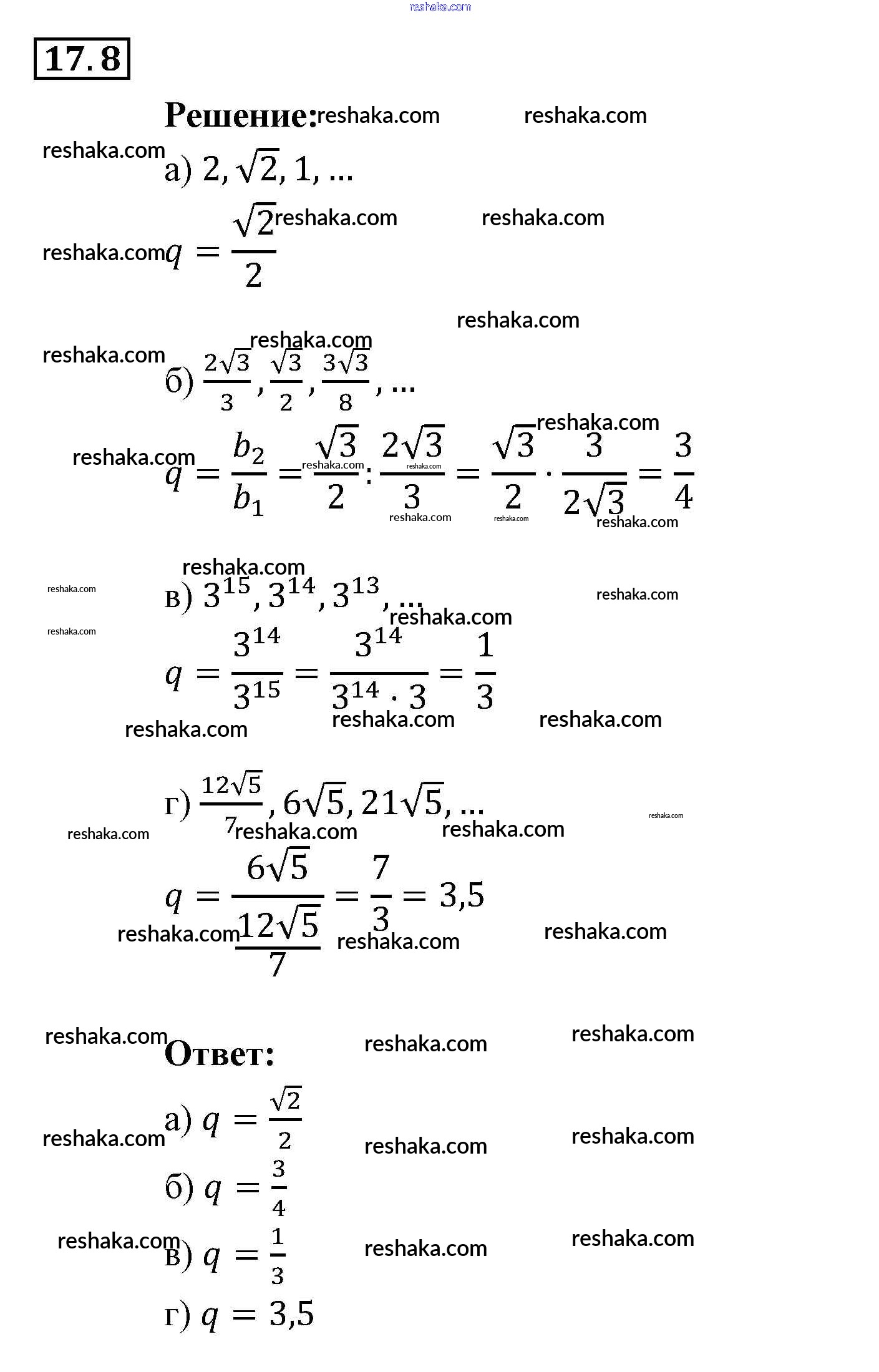 Представляем вам сборники по Алгебре, с готовыми ответами к Задачнику Мордкович школьной программы для учеников девятый класса. Это не просто гдз с ответом, а с подсказками, как верно решить § 17. Геометрическая прогрессия Глава 4. Прогрессии 8. Проверяй домашку с умом и получай высший балл!
