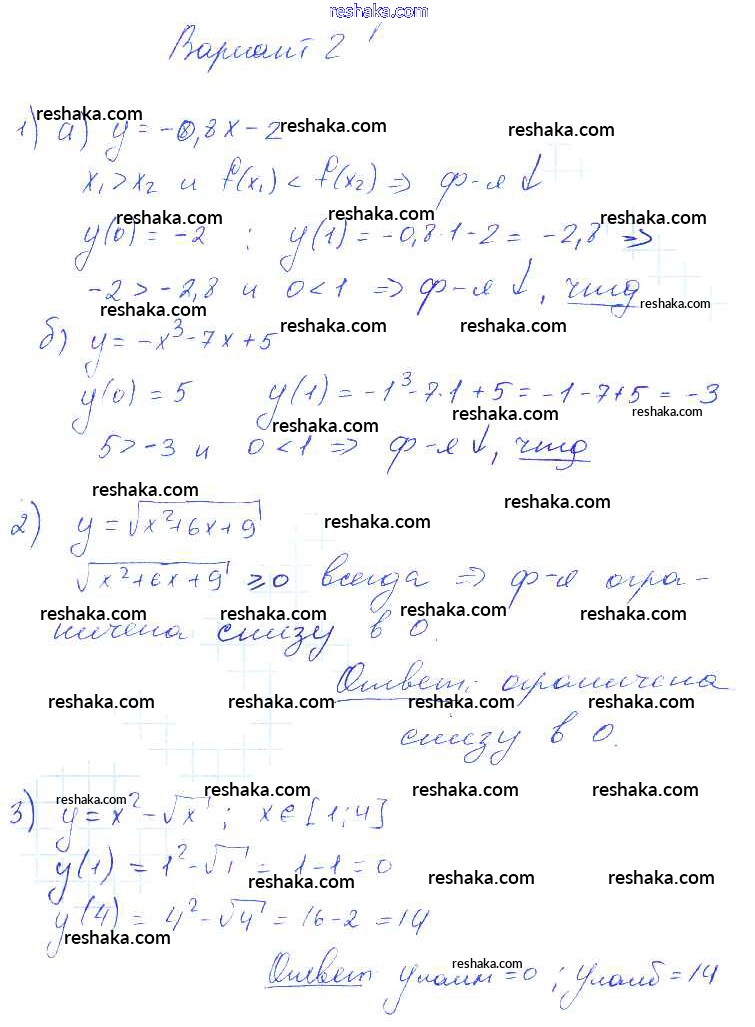 Решака - онлайн ответы Алгебра Попов за 9 класс Контрольные и самостоятельные работы ФГОС 2011 - Вариант 2