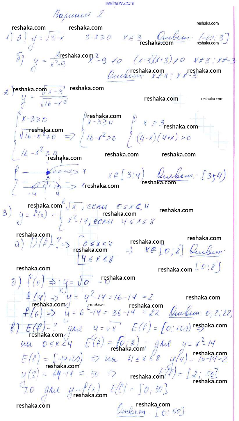 Решака - онлайн ответы Алгебра Попов за 9 класс Контрольные и самостоятельные работы ФГОС 2011 - Вариант 2