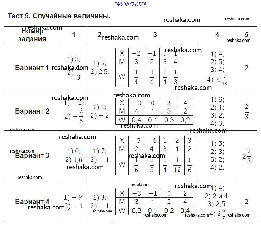 Решака - онлайн ответы Алгебра Ткачева за 9 класс Тематические тесты ФГОС 2014 - Тест № 5. Случайные величины
