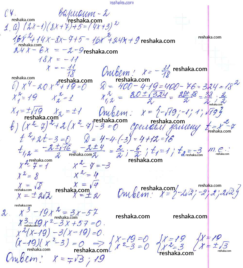 Представляем вам сборники по Алгебре, с готовыми ответами к Контрольным и самостоятельным работам Журавлев школьной программы для учеников девятый класса. Это не просто гдз с ответом, а с подсказками, как верно решить С-7. Решение целых уравнений Самостоятельные работы Вариант №2. Проверяй домашку с умом и получай высший балл!