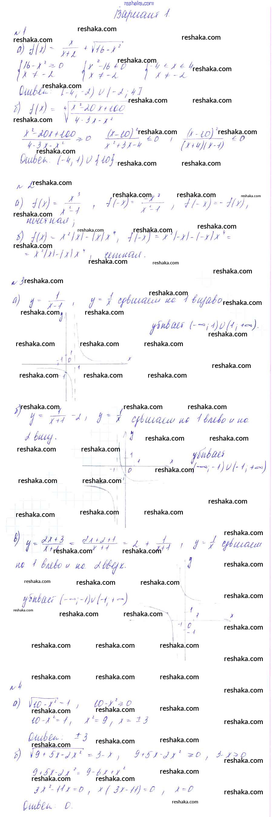 Решака - онлайн ответы Алгебра Зив, Гольдич за 9 класс Дидактические материалы ФГОС 2013 - вариант 1