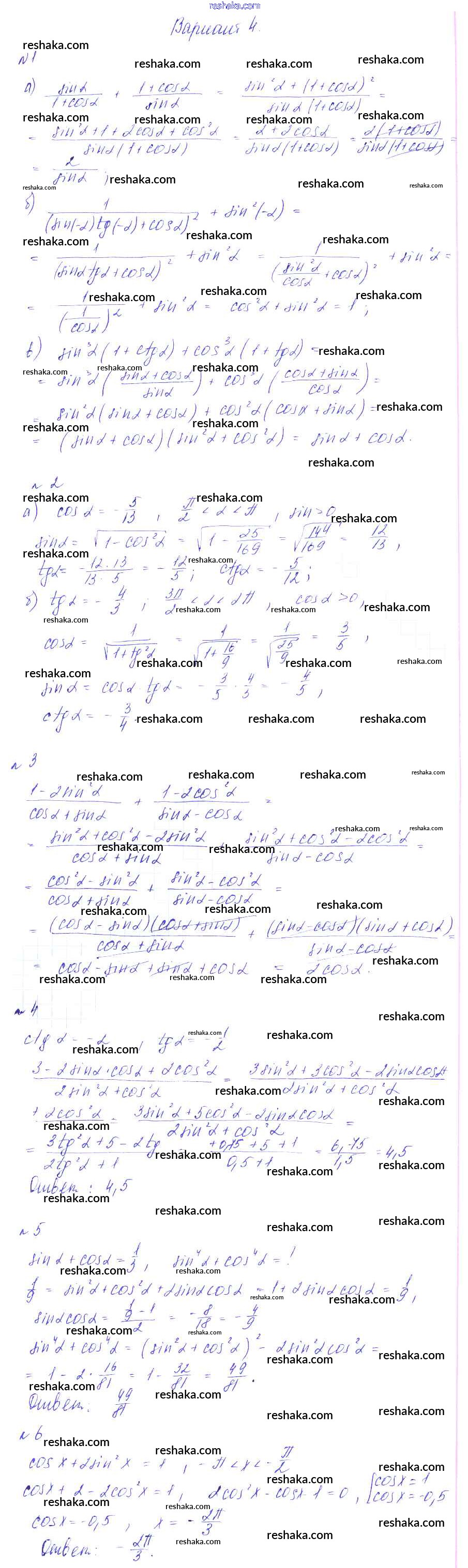 Представляем вам сборники по Алгебре, с готовыми ответами к Дидактическим материалам Зив школьной программы для учеников девятый класса. Это не просто гдз с ответом, а с подсказками, как верно решить КР-4. Основные тригонометрические тождества Контрольные работы вариант 4. Проверяй домашку с умом и получай высший балл!