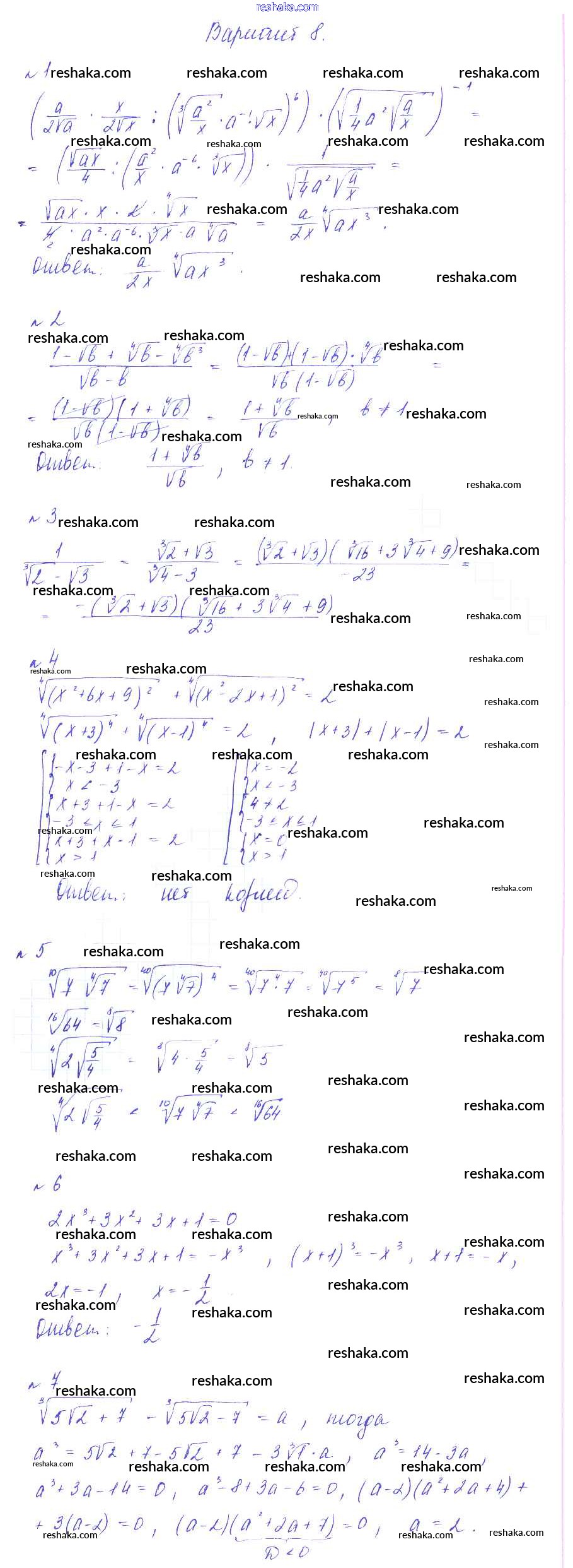 Решака - онлайн ответы Алгебра Зив, Гольдич за 9 класс Дидактические материалы ФГОС 2013 - вариант 8