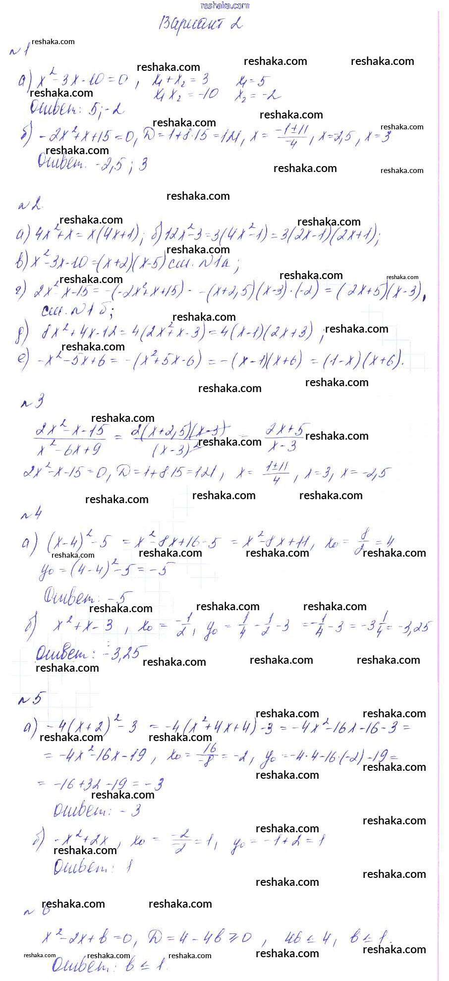 Решака - онлайн ответы Алгебра Звавич, Дьяконова за 9 класс Дидактические материалы ФГОС 2017 - вариант 2