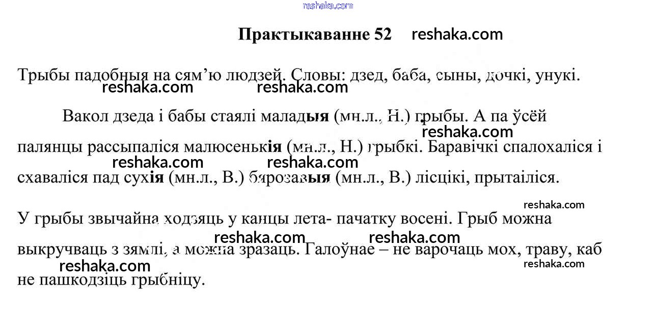 Представляем вам сборники по Белорусскому языку, с готовыми ответами к Учебнику Свірыдзенка школьной программы для учеников четвертый класса. Это не просто гдз с ответом, а с подсказками, как верно решить Часть 2. Практыкаванні 52. Проверяй домашку с умом и получай высший балл!