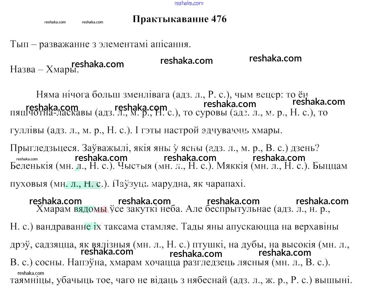 Решака - онлайн ответы Белорусский язык Валочка, Зелянко за 6 класс Учебник 2020 - 476