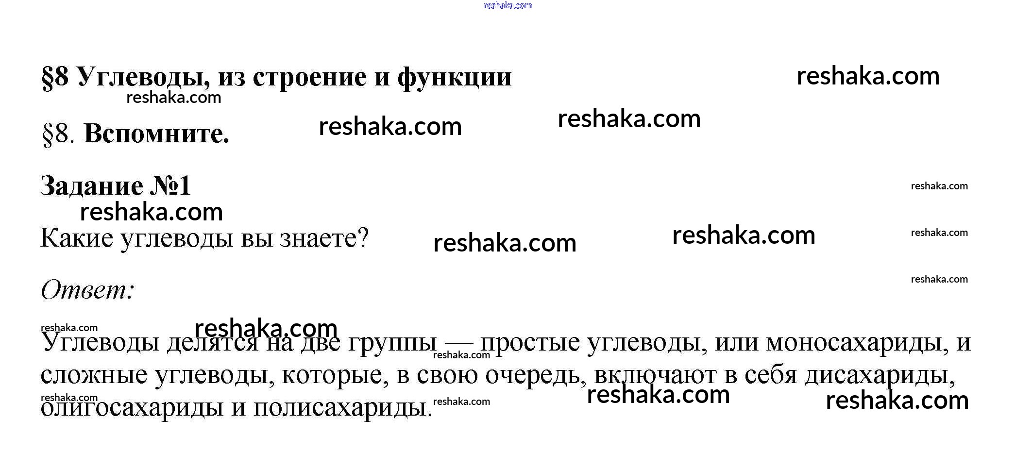 Представляем вам сборники по Биологии, с готовыми ответами к Учебнику Пасечник школьной программы для учеников десятый класса. Это не просто гдз с ответом, а с подсказками, как верно решить Вспомните §8. Углеводы, их строение и функции 1. Проверяй домашку с умом и получай высший балл!