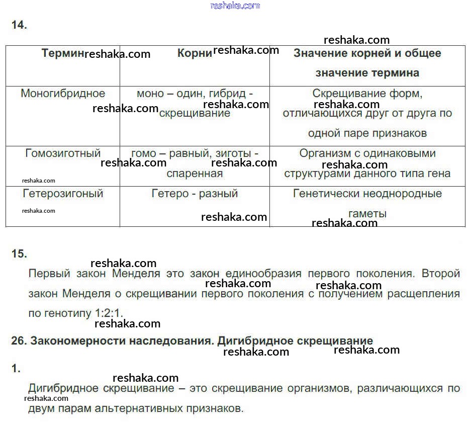 Решака - онлайн ответы Биология Агафонова, Сивоглазов за 10 класс Рабочая тетрадь Базовый уровень ФГОС 2014 - 140