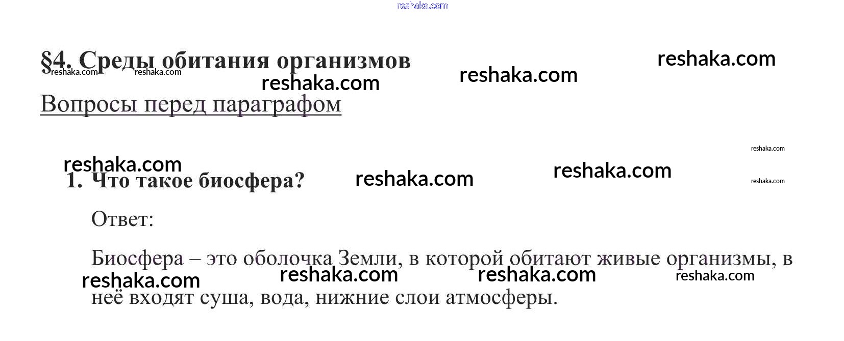 Представляем вам сборники по Биологии, с готовыми ответами к Учебнику Пасечник школьной программы для учеников пятый класса. Это не просто гдз с ответом, а с подсказками, как верно решить Вопросы в начале параграфа §4. Среды обитания организмов 1. Проверяй домашку с умом и получай высший балл!