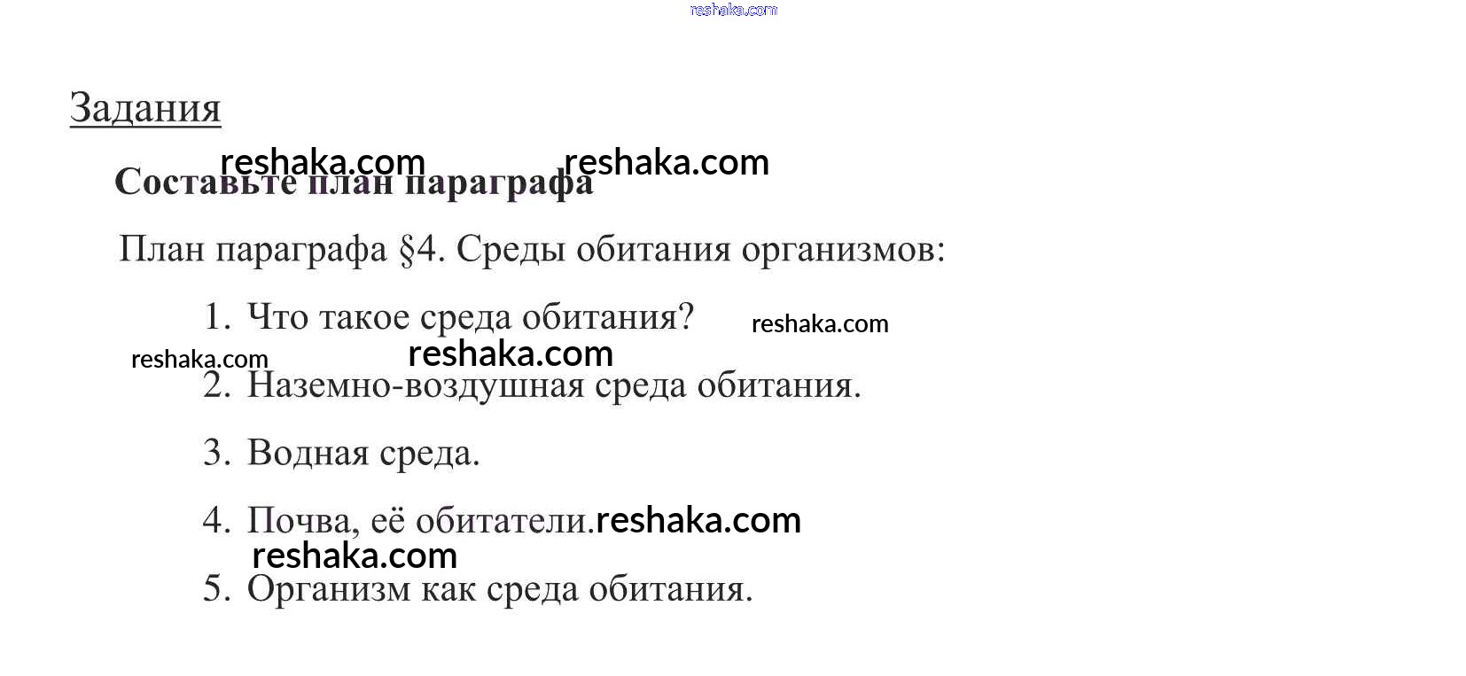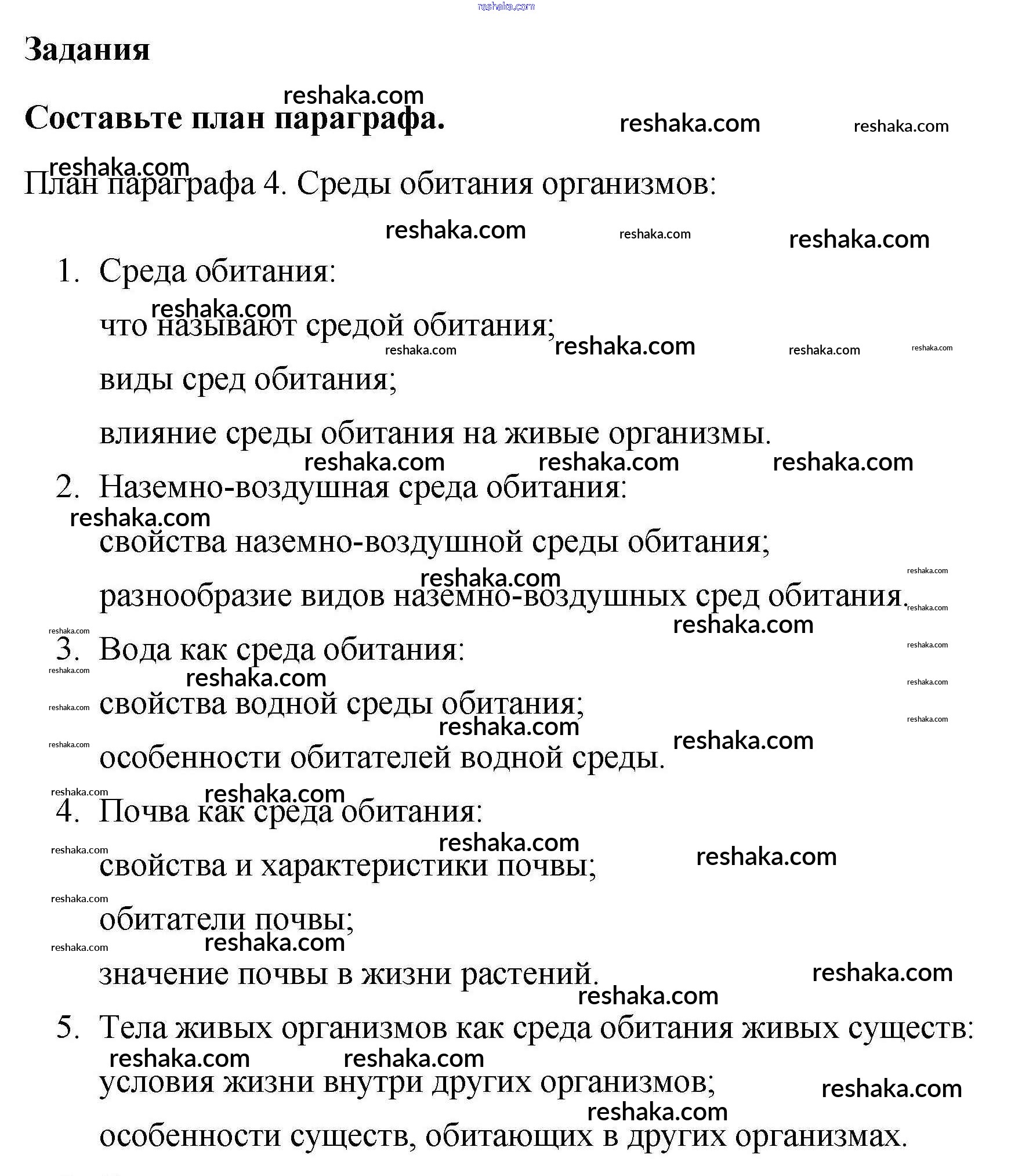 Представляем вам сборники по Биологии, с готовыми ответами к Учебнику Пасечник школьной программы для учеников пятый класса. Это не просто гдз с ответом, а с подсказками, как верно решить Задания §4. Среды обитания организмов 1. Проверяй домашку с умом и получай высший балл!