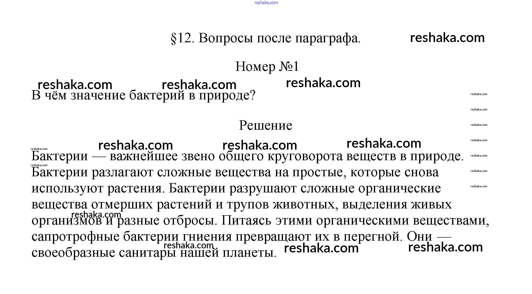 Решака - онлайн ответы Биология Пасечник за 5 класс Учебник ФГОС 2016 - 1
