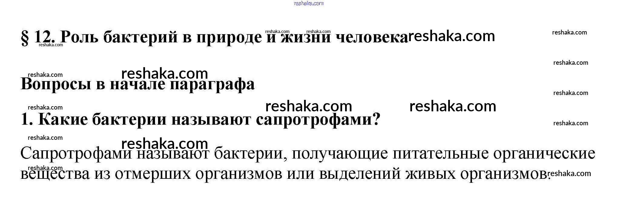 Представляем вам сборники по Биологии, с готовыми ответами к Учебнику Пасечник школьной программы для учеников пятый класса. Это не просто гдз с ответом, а с подсказками, как верно решить Вопросы в начале параграфа §12. Роль бактерий в природе и жизни человека 1. Проверяй домашку с умом и получай высший балл!