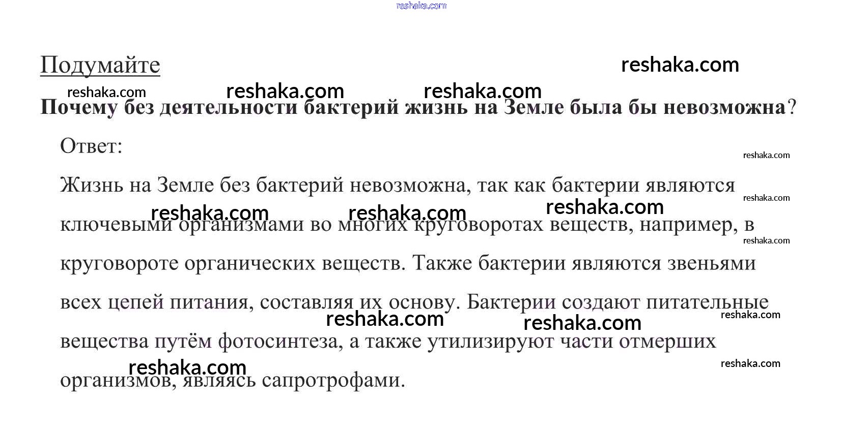Представляем вам сборники по Биологии, с готовыми ответами к Учебнику Пасечник школьной программы для учеников пятый класса. Это не просто гдз с ответом, а с подсказками, как верно решить Подумайте §12. Роль бактерий в природе и жизни человека 1. Проверяй домашку с умом и получай высший балл!