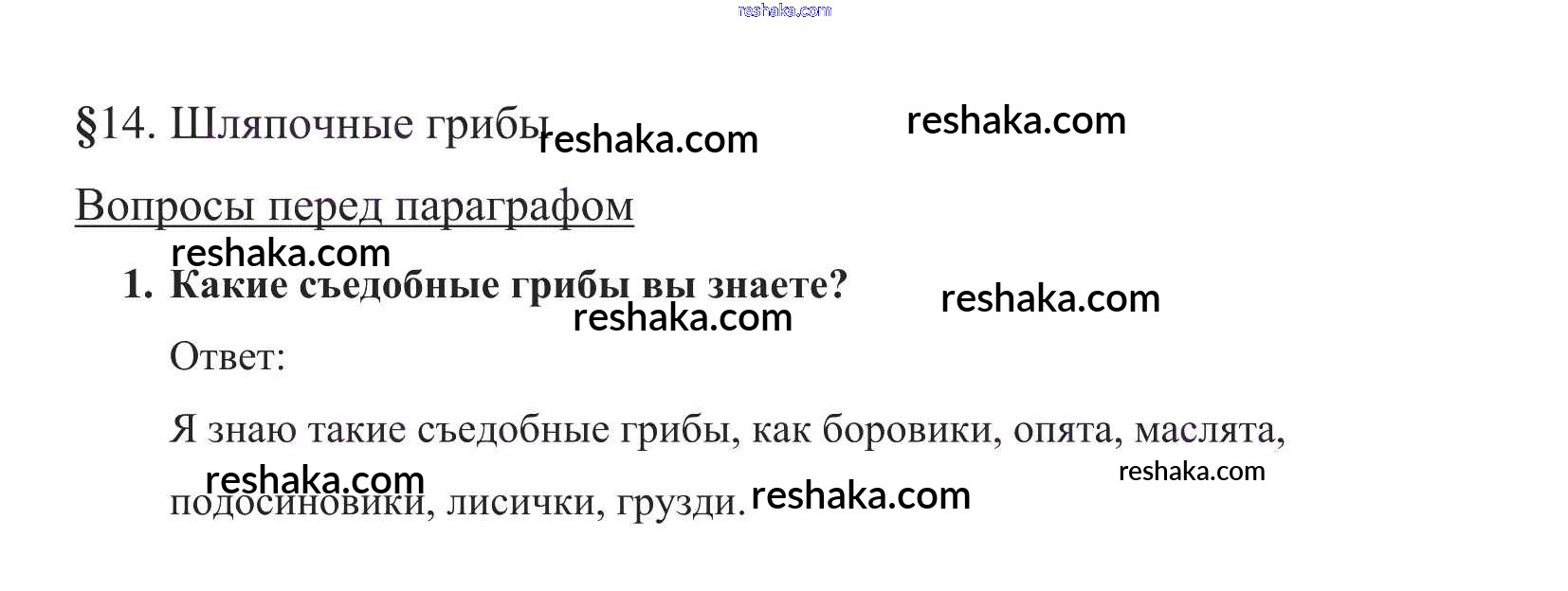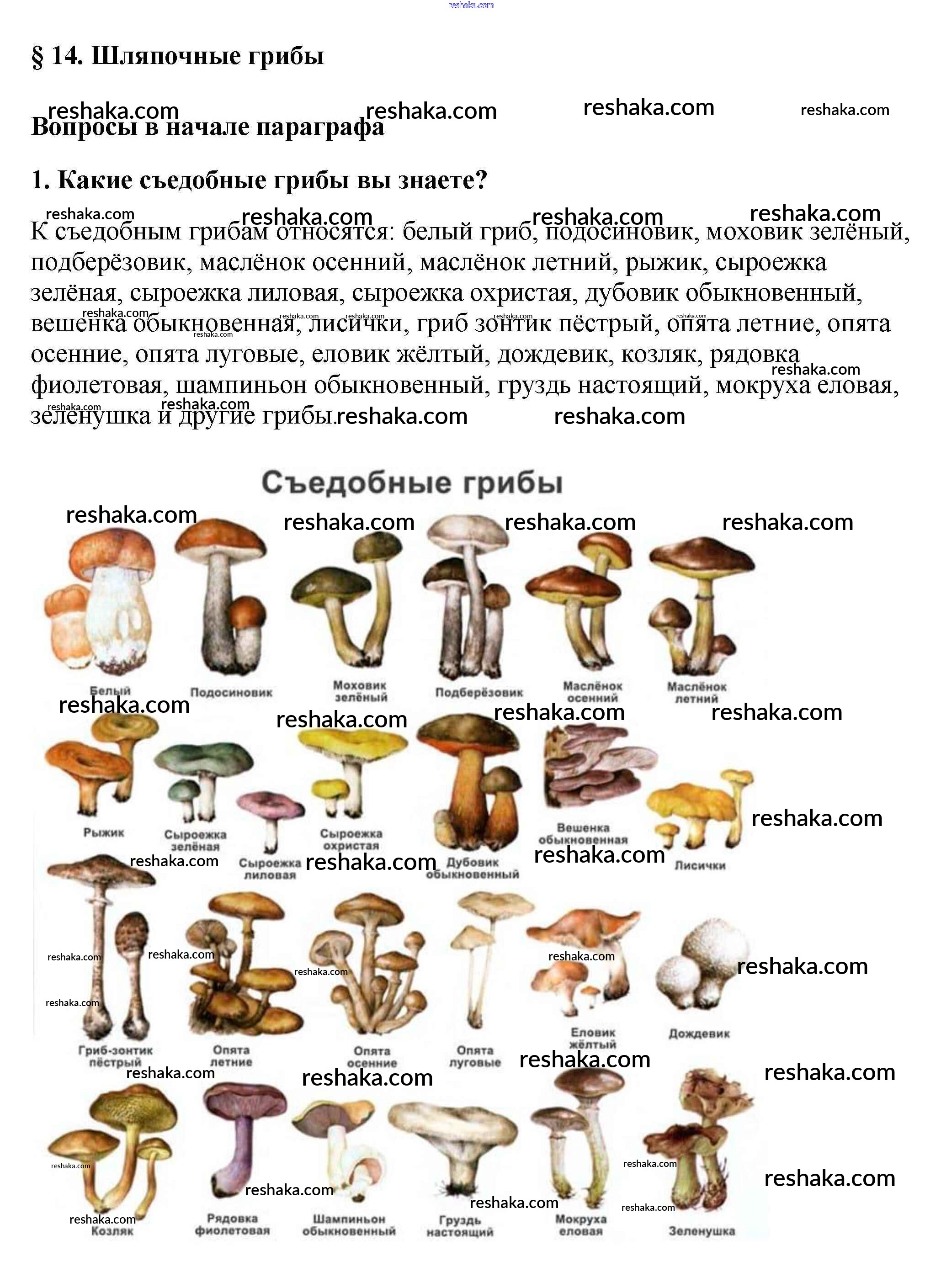 Представляем вам сборники по Биологии, с готовыми ответами к Учебнику Пасечник школьной программы для учеников пятый класса. Это не просто гдз с ответом, а с подсказками, как верно решить Вопросы в начале параграфа §14. Шляпочные грибы 1. Проверяй домашку с умом и получай высший балл!