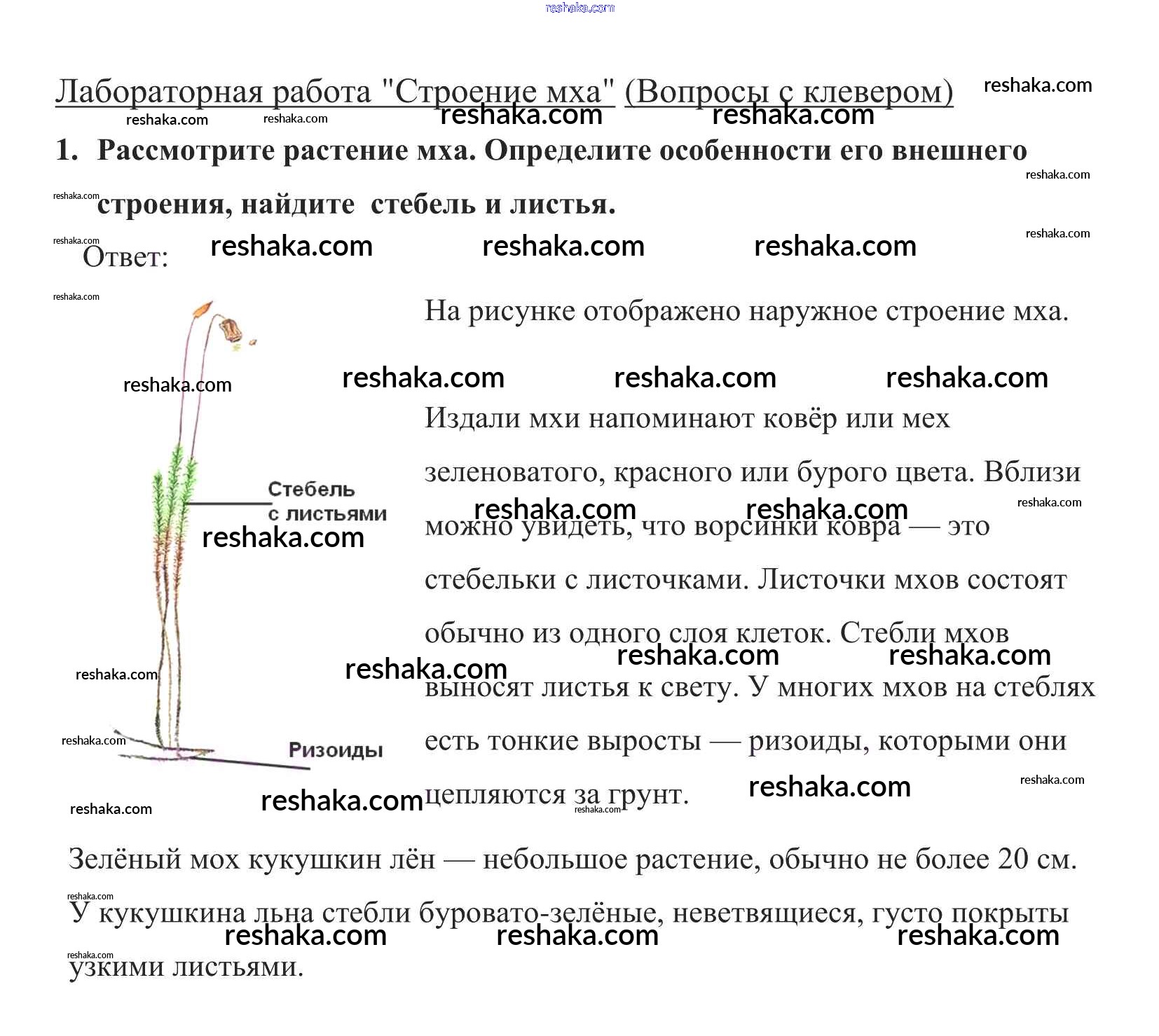 Представляем вам сборники по Биологии, с готовыми ответами к Учебнику Пасечник школьной программы для учеников пятый класса. Это не просто гдз с ответом, а с подсказками, как верно решить Строение мха §20. Мхи 1. Проверяй домашку с умом и получай высший балл!
