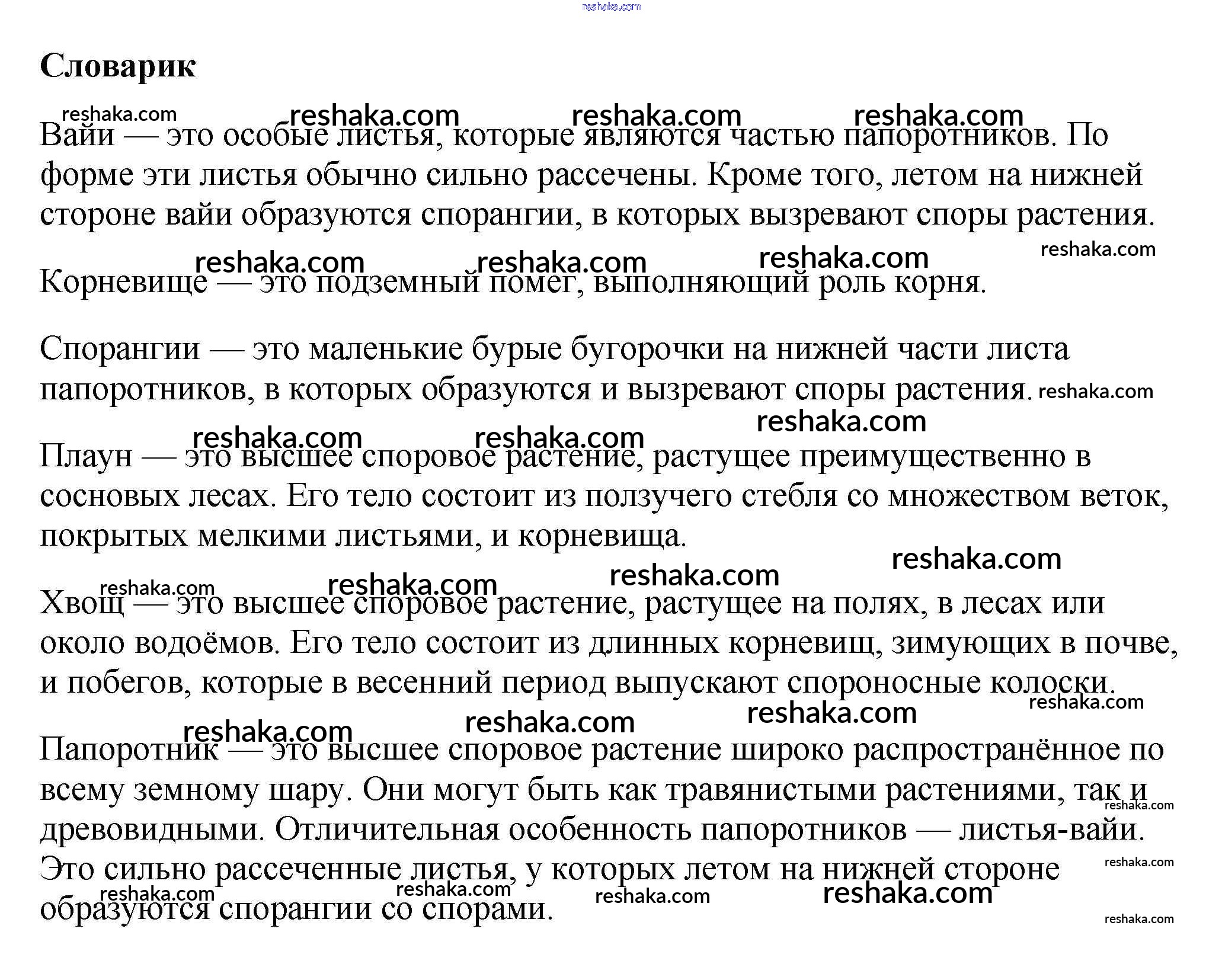 Представляем вам сборники по Биологии, с готовыми ответами к Учебнику Пасечник школьной программы для учеников пятый класса. Это не просто гдз с ответом, а с подсказками, как верно решить Словарик §21. Плауны. Хвощи. Папоротники 1. Проверяй домашку с умом и получай высший балл!