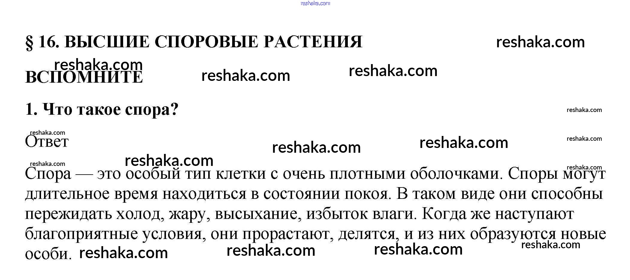 Представляем вам сборники по Биологии, с готовыми ответами к Учебнику Пасечник школьной программы для учеников пятый-шестой класса. Это не просто гдз с ответом, а с подсказками, как верно решить Вспомните §16. Высшие споровые растения 1. Проверяй домашку с умом и получай высший балл!