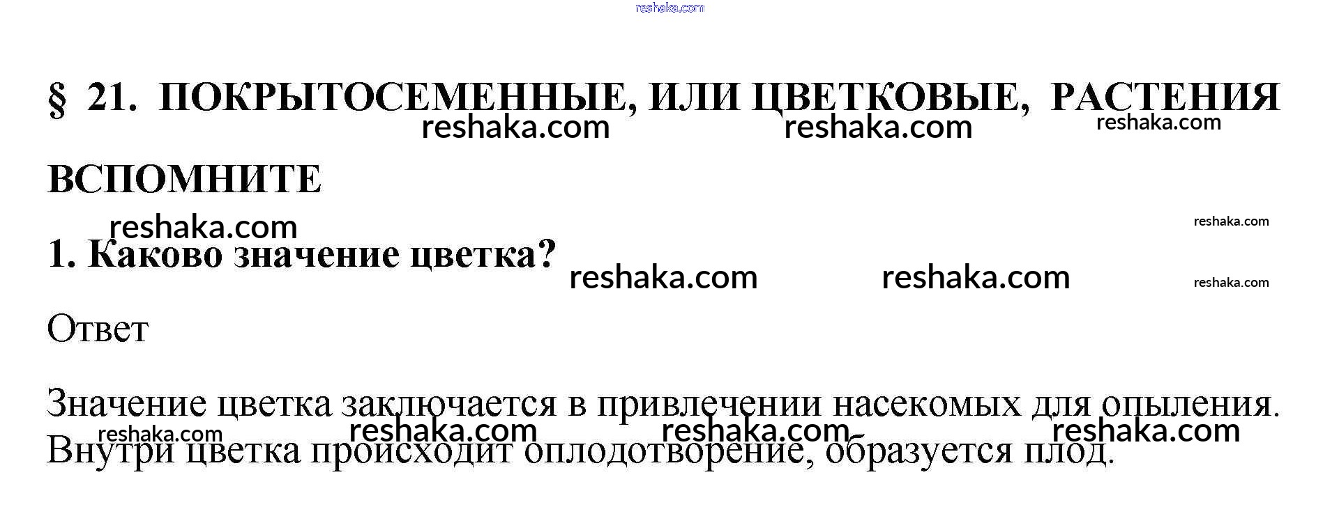 Представляем вам сборники по Биологии, с готовыми ответами к Учебнику Пасечник школьной программы для учеников пятый-шестой класса. Это не просто гдз с ответом, а с подсказками, как верно решить Вспомните §21. Покрытосеменные, или Цветковые, растения 1. Проверяй домашку с умом и получай высший балл!
