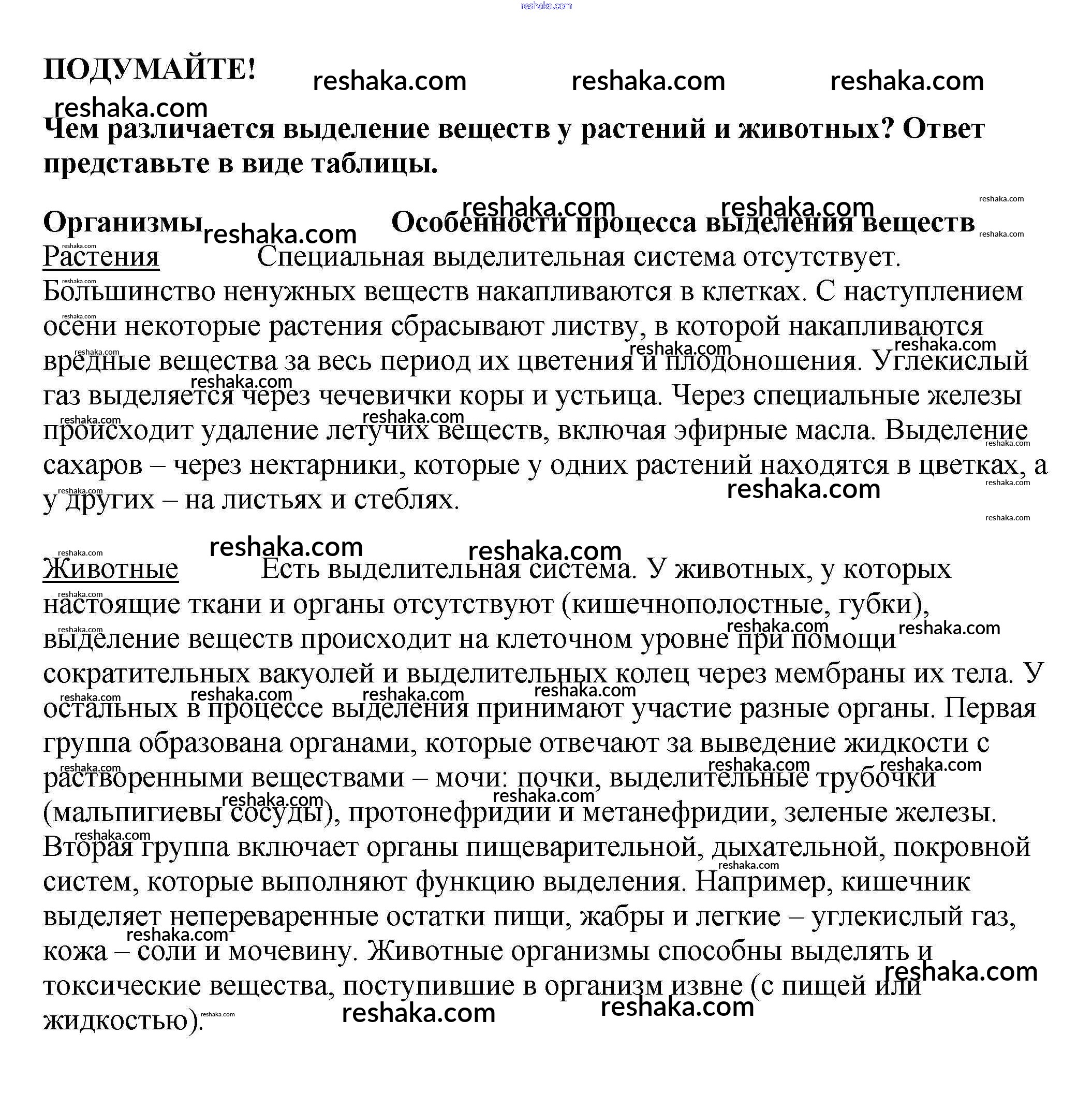 Представляем вам сборники по Биологии, с готовыми ответами к Учебнику Пасечник школьной программы для учеников пятый-шестой класса. Это не просто гдз с ответом, а с подсказками, как верно решить Подумайте §35. Выделение у растений и животных 1. Проверяй домашку с умом и получай высший балл!