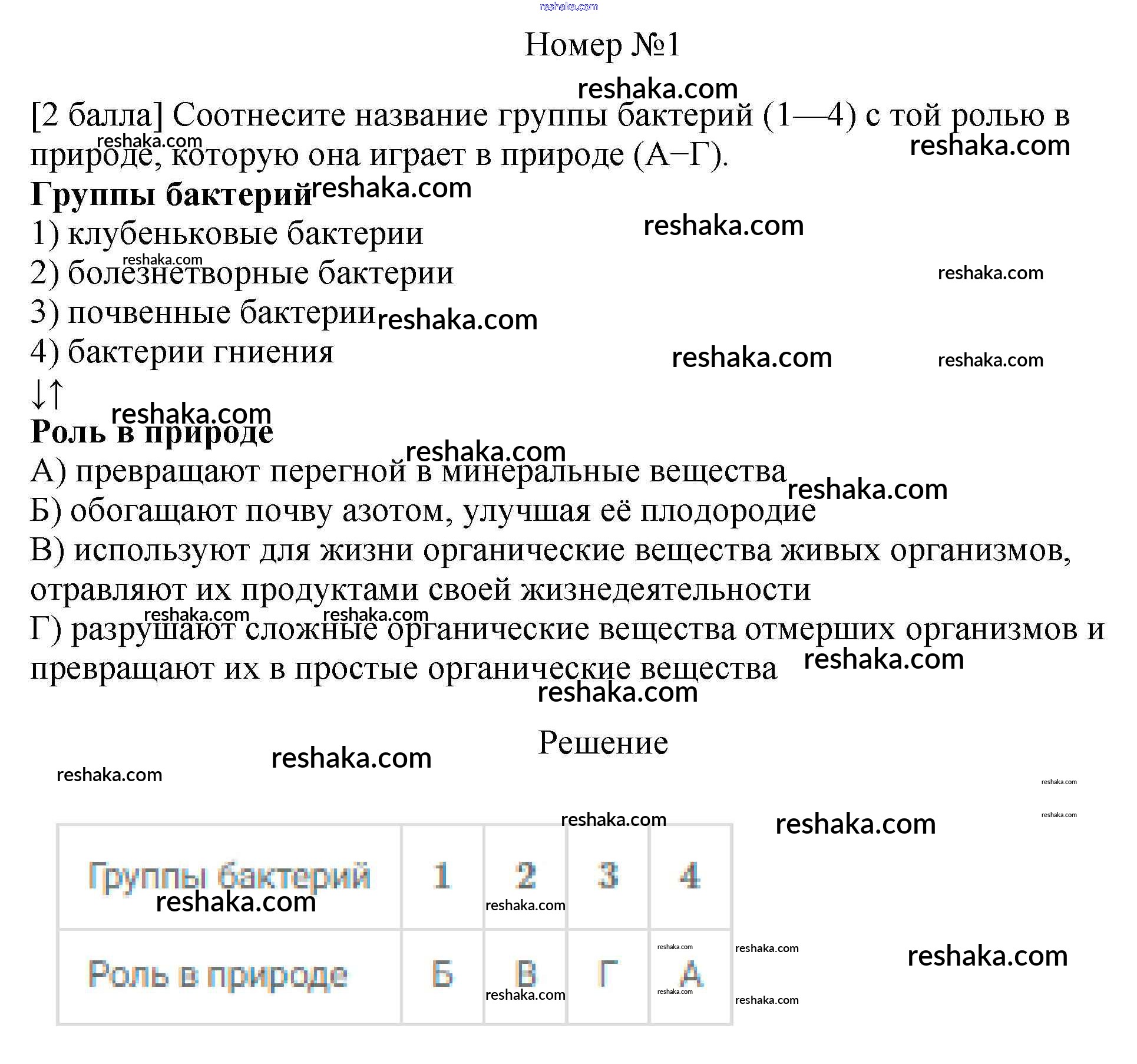 Решака - онлайн ответы Биология Пасечник, Ефимова за 5 класс Тесты ФГОС 2020 - 1