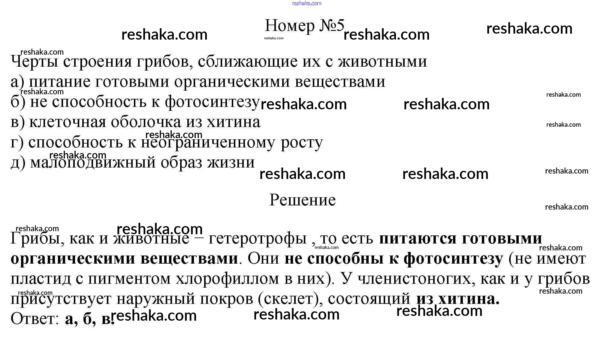 Решака - онлайн ответы Биология Пасечник, Ефимова за 5 класс Тесты ФГОС 2020 - 5