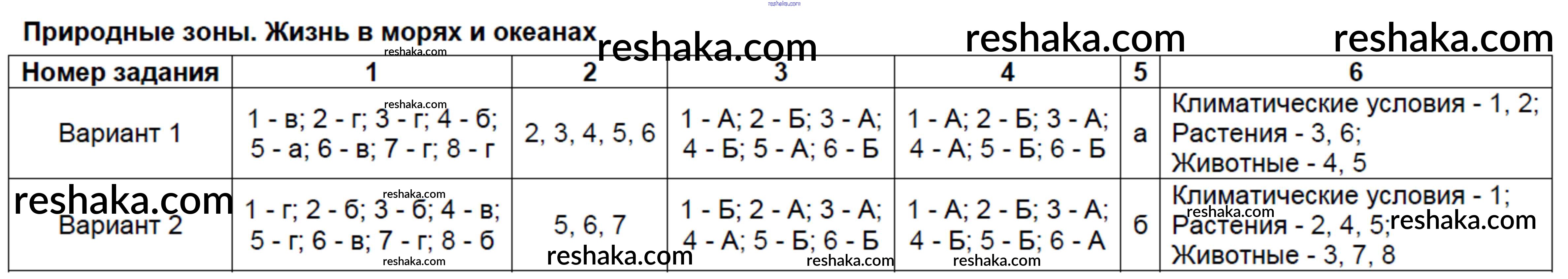 Решака - онлайн ответы Биология Сонин за 5 класс Тесты ФГОС 2017 - Тест №16. Природные зоны. Жизнь в морях и океанах