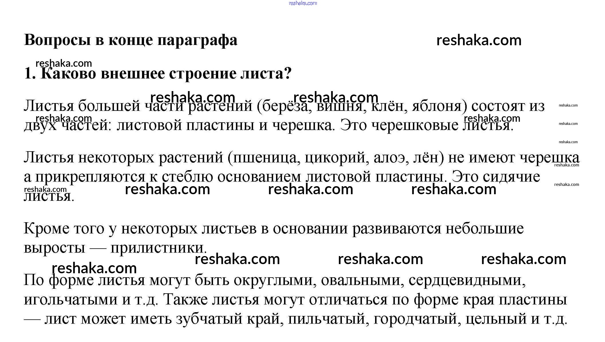 Представляем вам сборники по Биологии, с готовыми ответами к Учебнику Пасечник школьной программы для учеников шестой класса. Это не просто гдз с ответом, а с подсказками, как верно решить Вопросы в конце параграфа §6. Внешнее строение листа 1. Проверяй домашку с умом и получай высший балл!