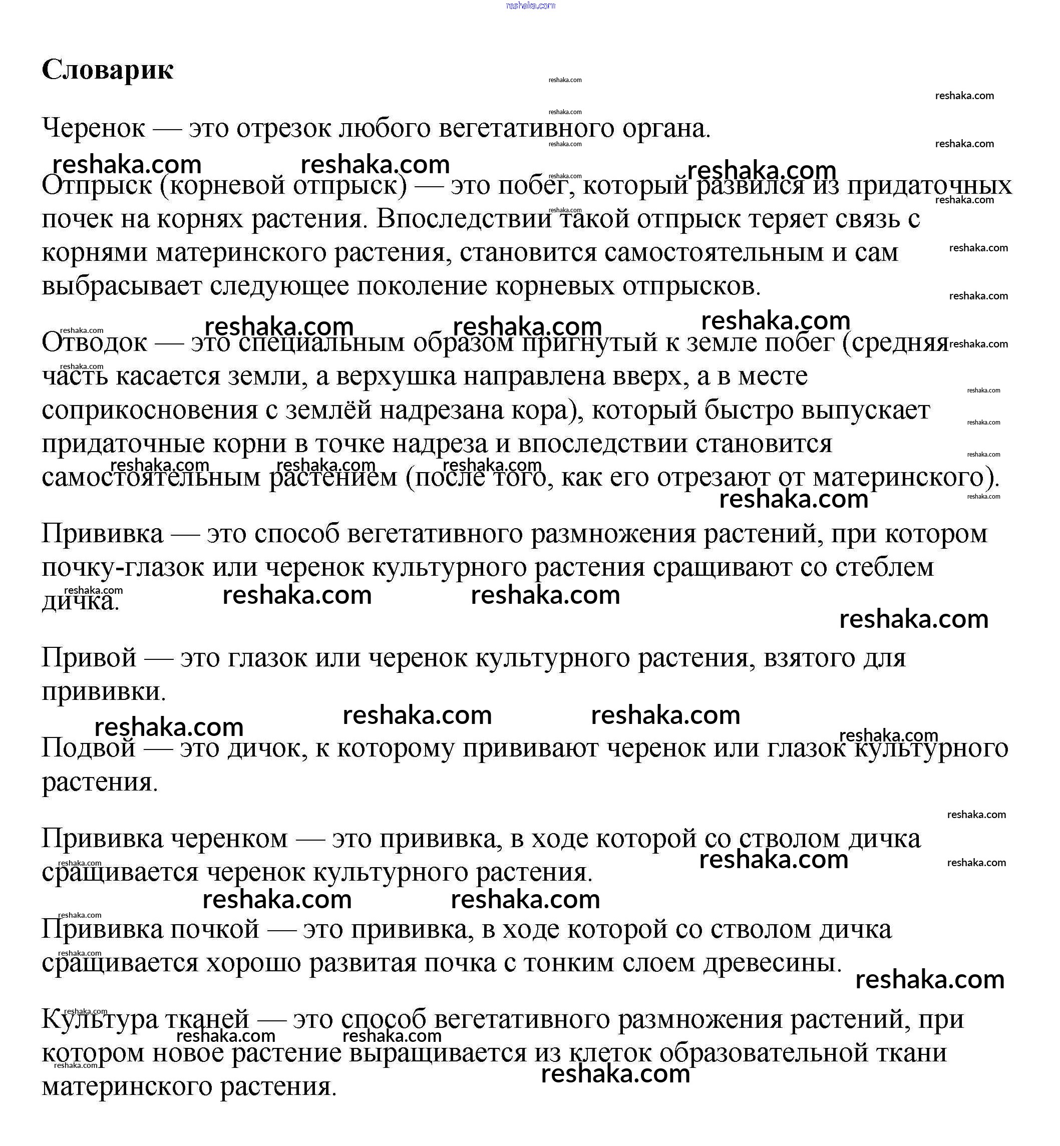 Представляем вам сборники по Биологии, с готовыми ответами к Учебнику Пасечник школьной программы для учеников шестой класса. Это не просто гдз с ответом, а с подсказками, как верно решить Словарик §25. Вегетативное размножение покрытосеменных растений 1. Проверяй домашку с умом и получай высший балл!