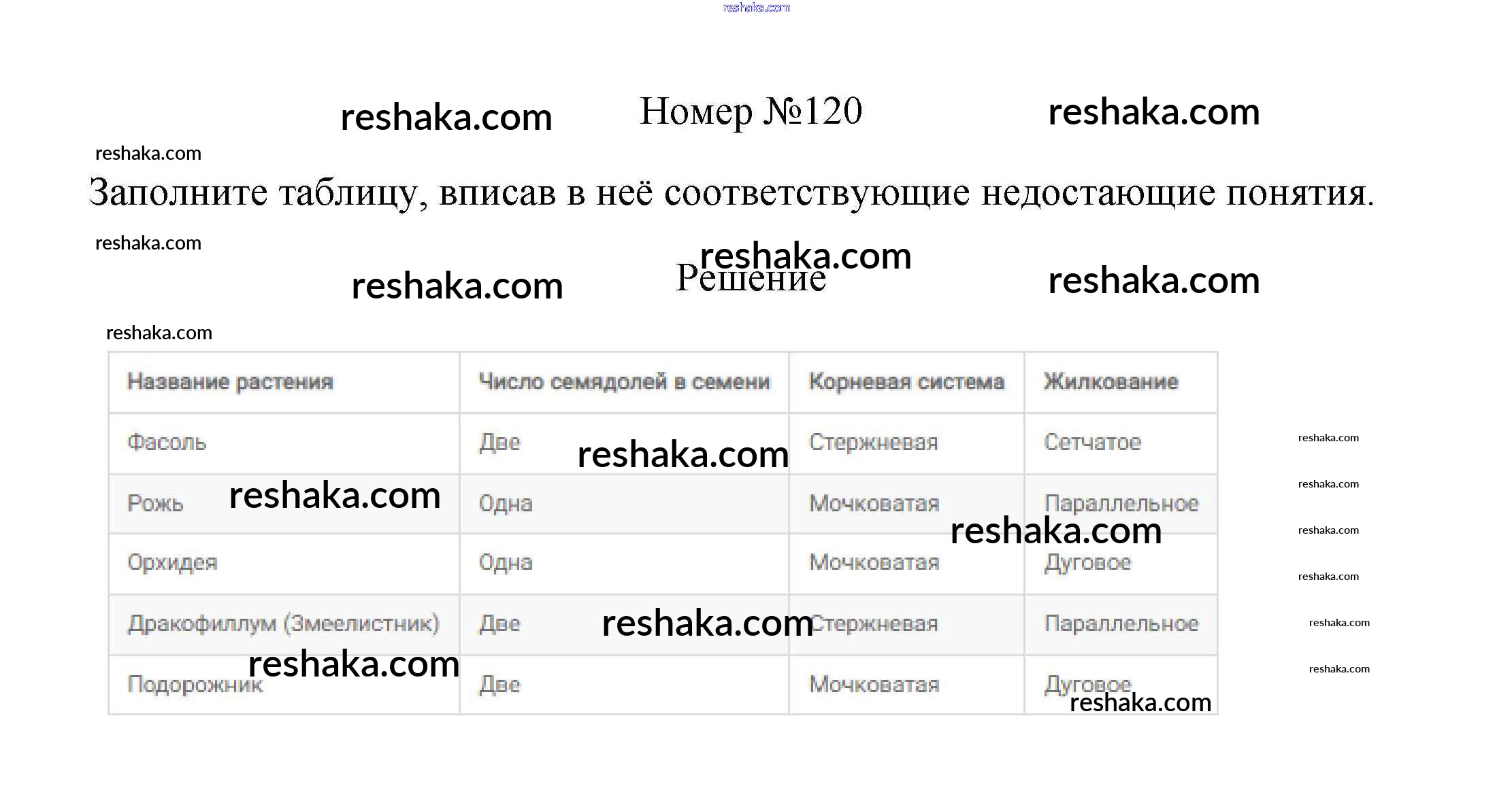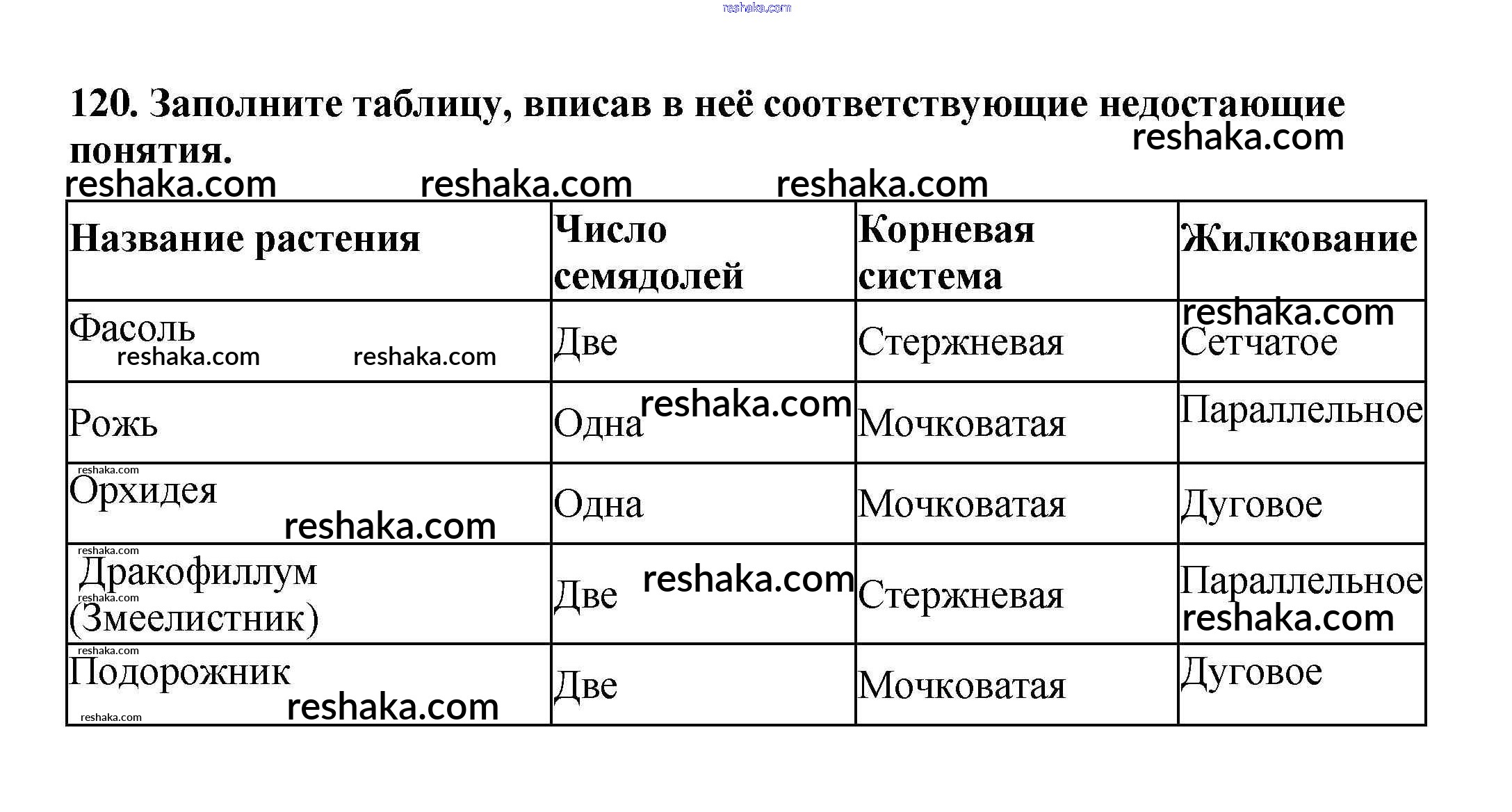 Решака - онлайн ответы Биология Пасечник за 6 класс Рабочая тетрадь ФГОС 2017 - 120
