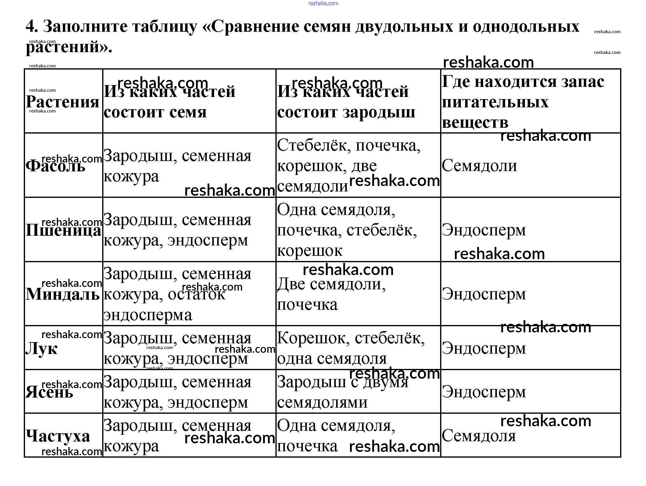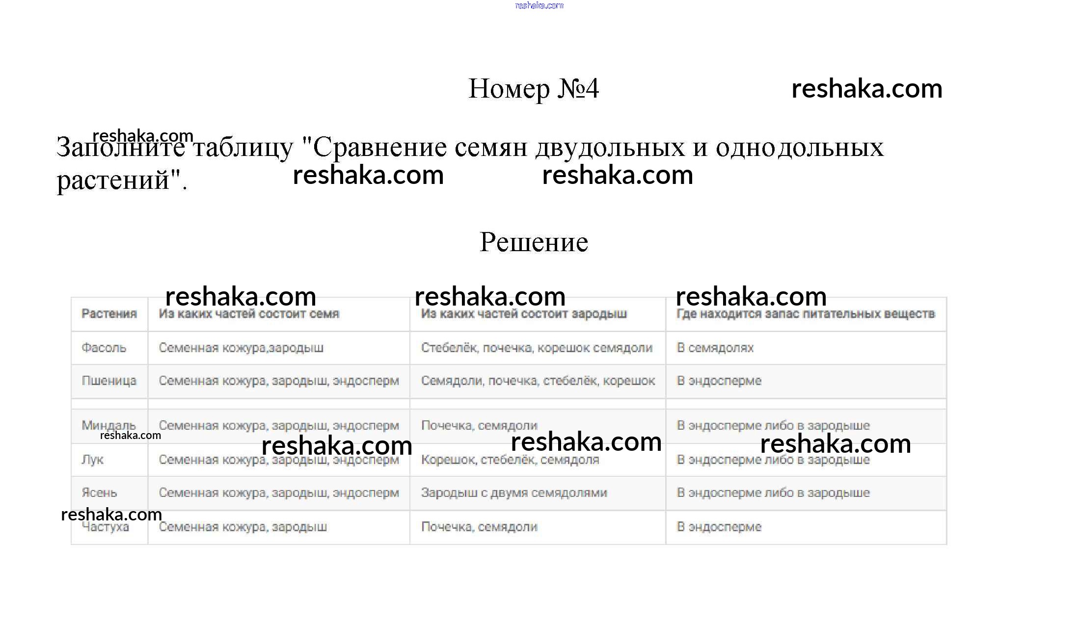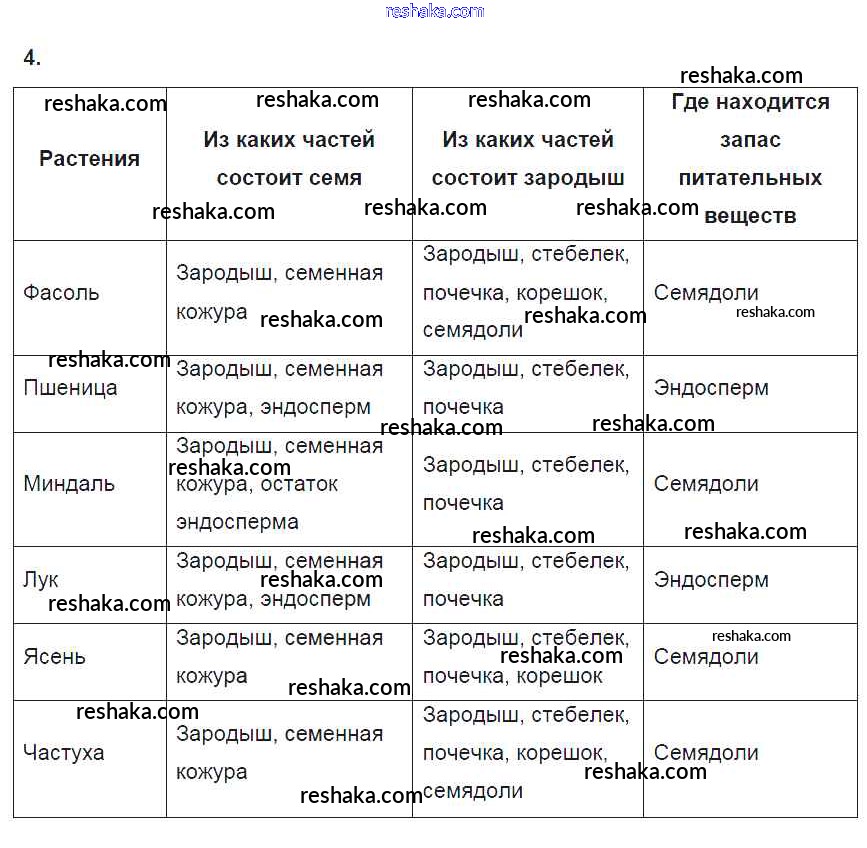 Решака - онлайн ответы Биология Пасечник за 6 класс Рабочая тетрадь ФГОС 2017 - 4