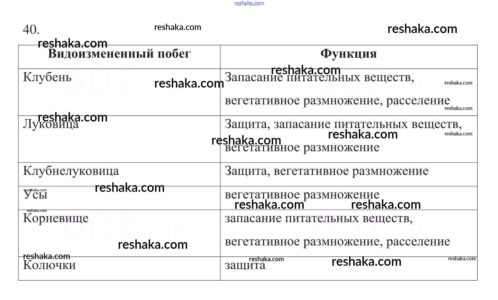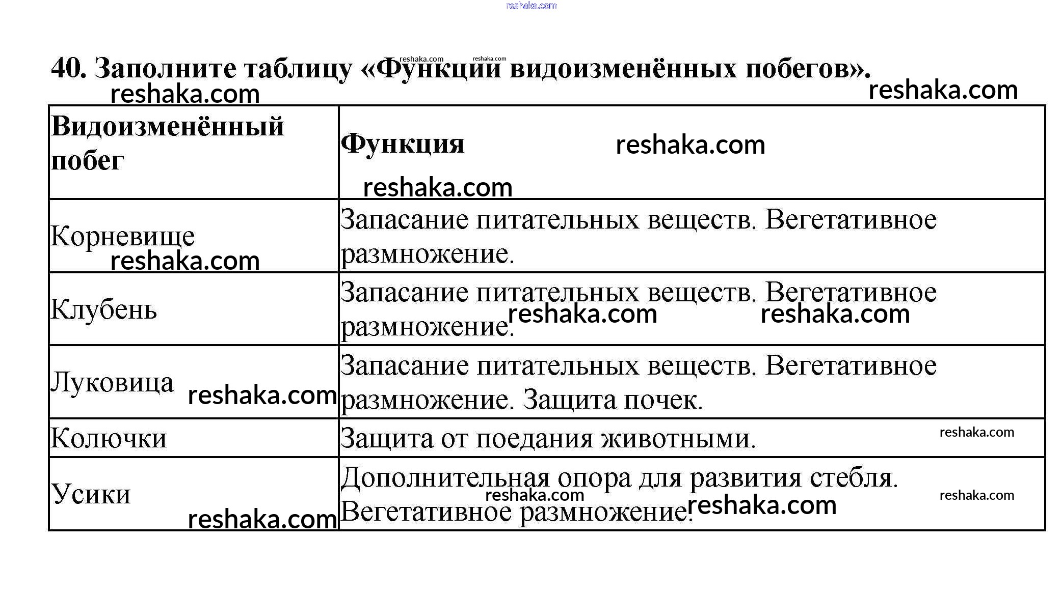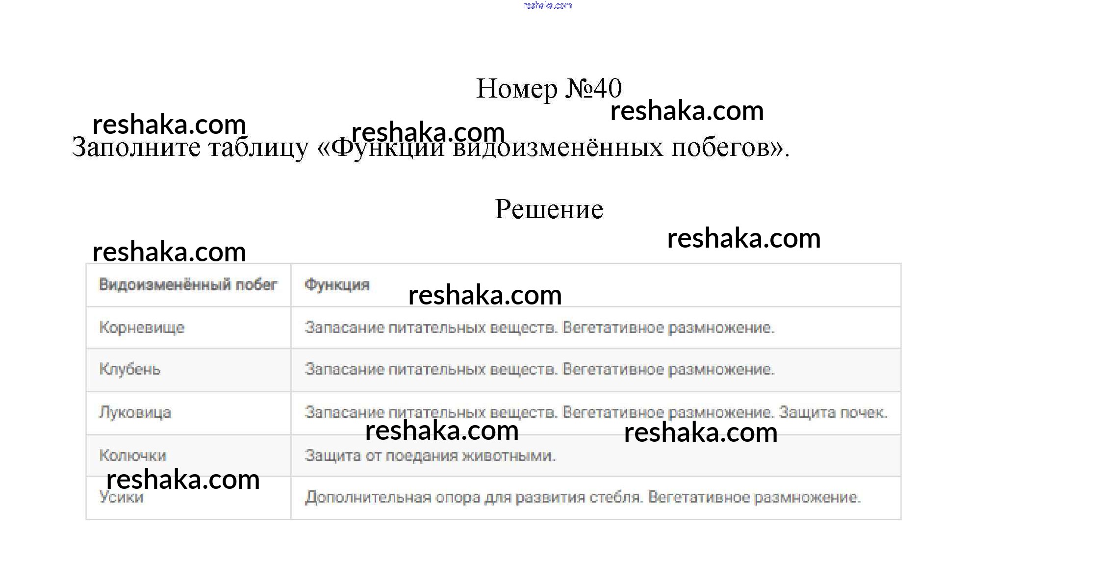 Решака - онлайн ответы Биология Пасечник за 6 класс Рабочая тетрадь ФГОС 2017 - 40