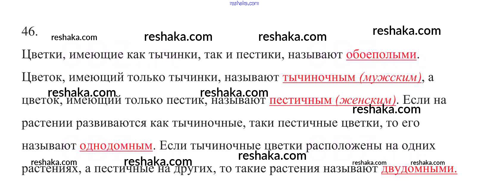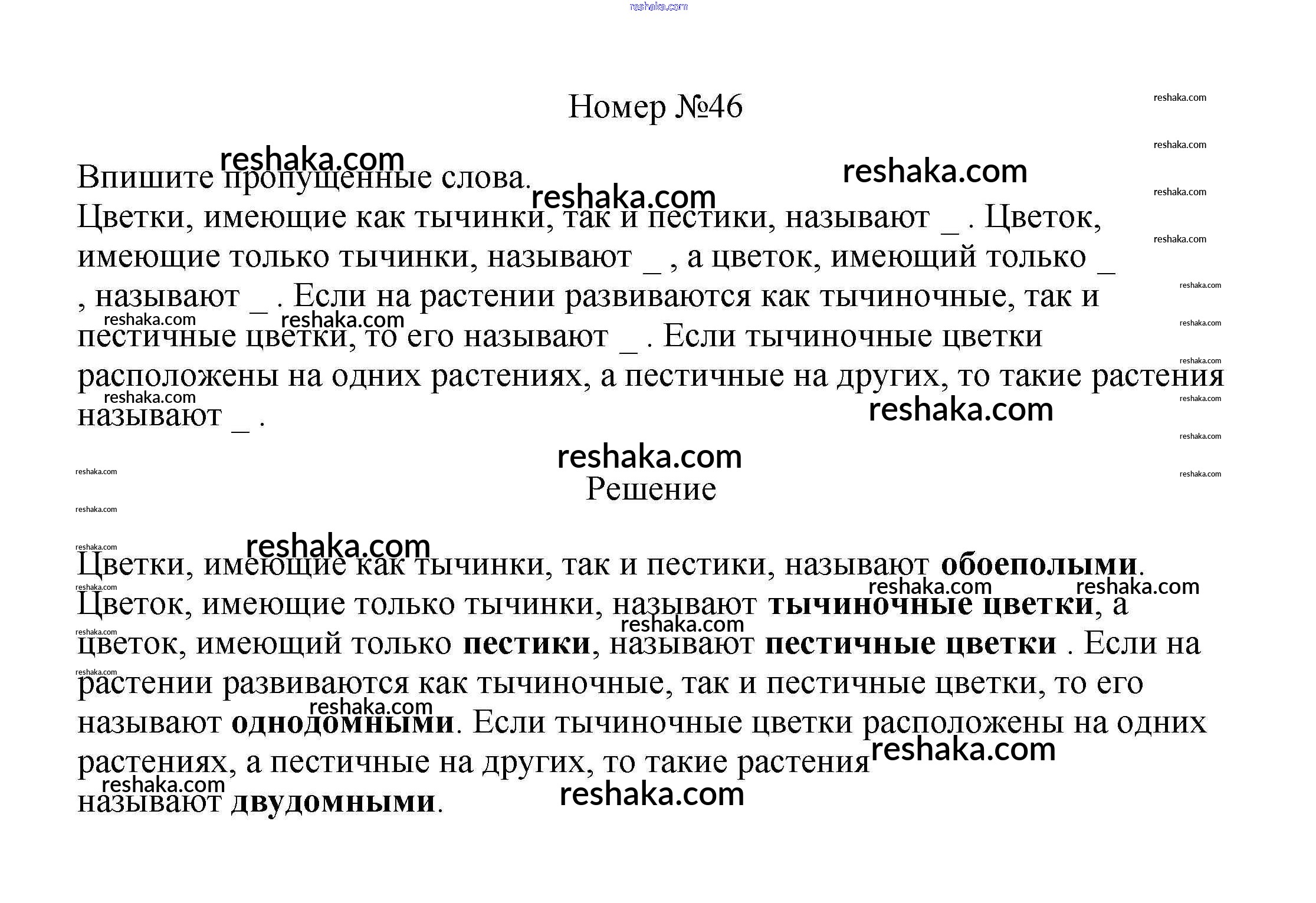 Решака - онлайн ответы Биология Пасечник за 6 класс Рабочая тетрадь ФГОС 2017 - 46