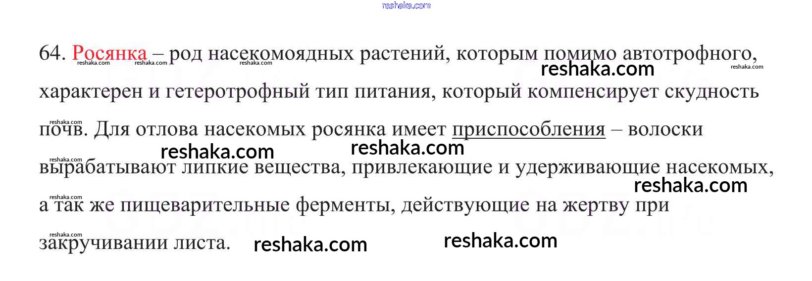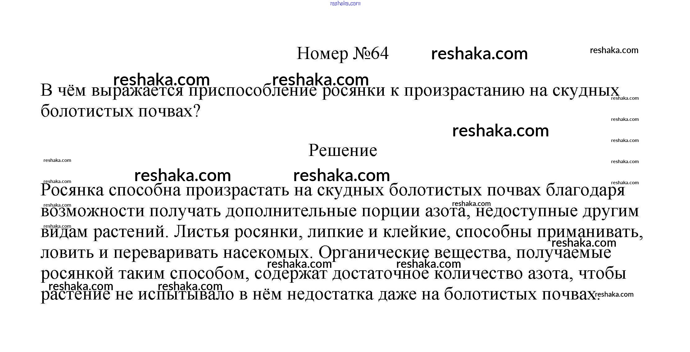Решака - онлайн ответы Биология Пасечник за 6 класс Рабочая тетрадь ФГОС 2017 - 64