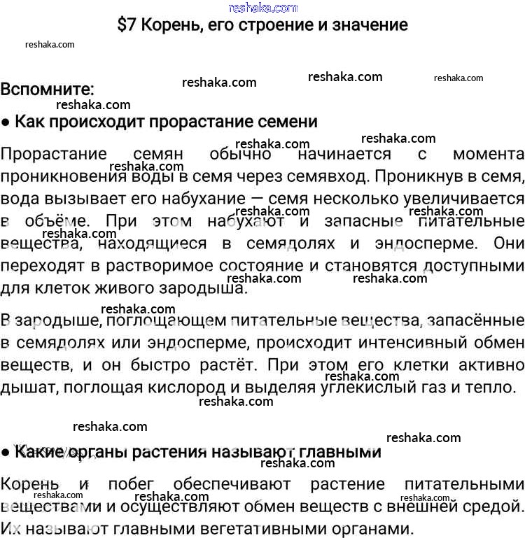 Представляем вам сборники по Биологии, с готовыми ответами к Учебнику Пономарева школьной программы для учеников шестой класса. Это не просто гдз с ответом, а с подсказками, как верно решить §7. Корень, его строение и значение Вспомните. Проверяй домашку с умом и получай высший балл!