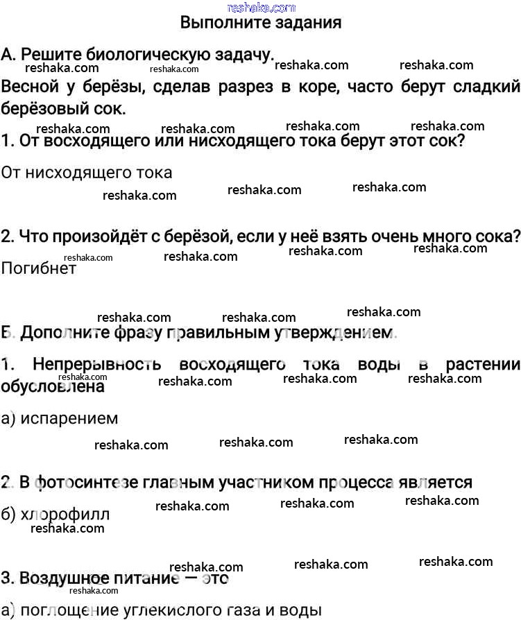 Решака - онлайн ответы Биология Пономарева, Корнилова за 6 класс Учебник ФГОС 2019 - Тестовые задания
