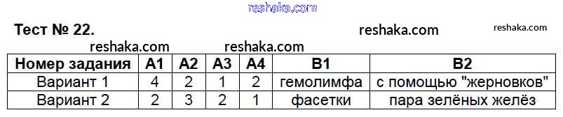 Решака - онлайн ответы Биология Артемьева за 7 класс Контрольно-измерительные материалы (КИМ) ФГОС 2018 - 22